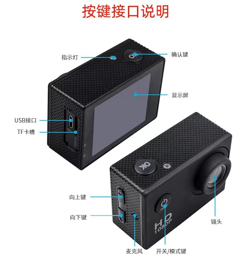 2. 本产品标配出货不带TF卡(机身无内存,需要插TF卡才可以拍照录像!)