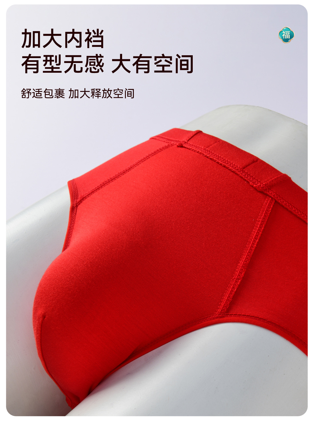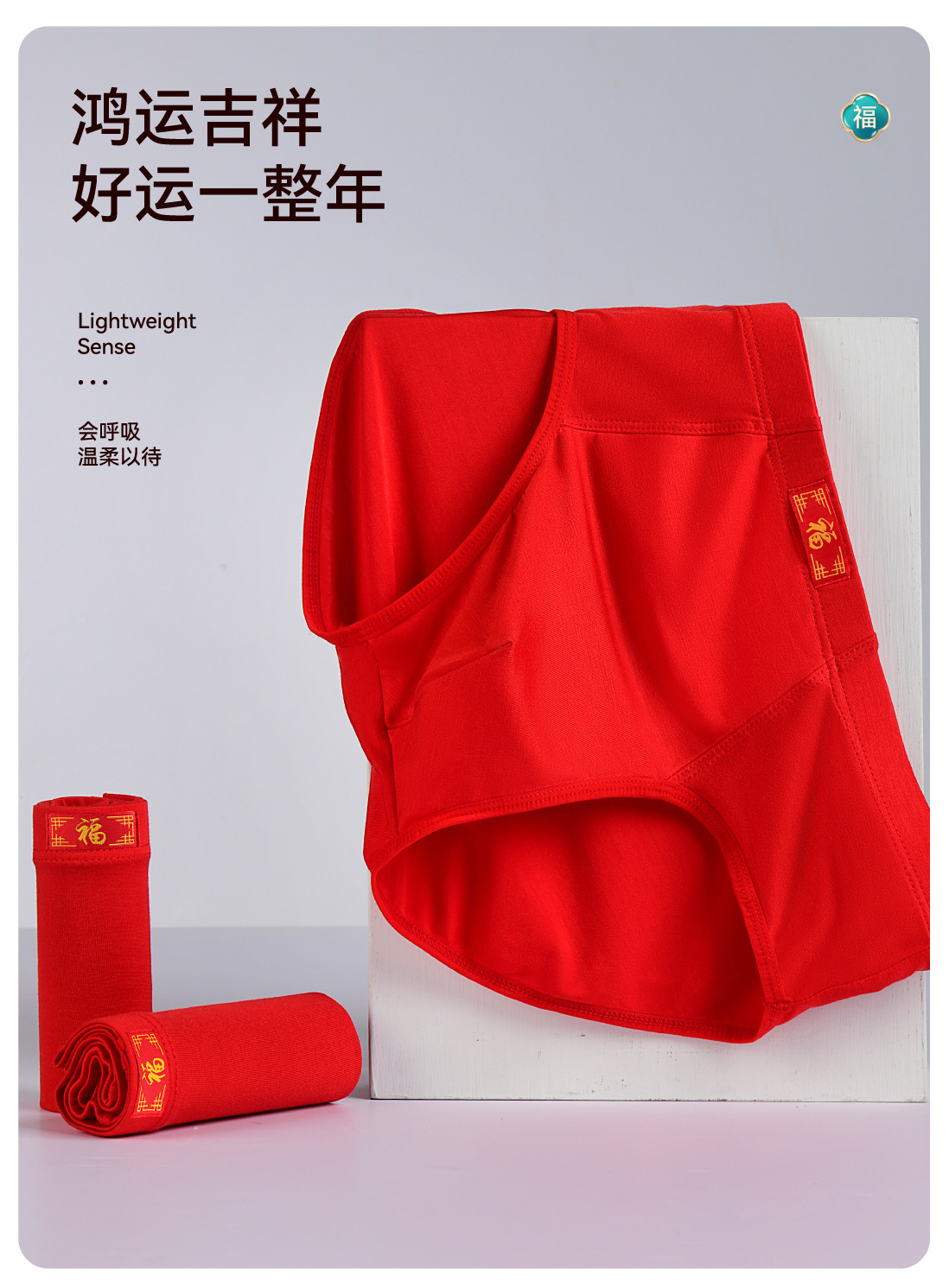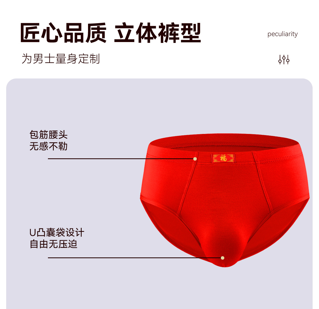 Modal Benmingnian Red Men's Briefs Middle Waist Loose Breathable 플러스 사이즈 속옷 젊은 뚱뚱한 가이 바지스토어 가기