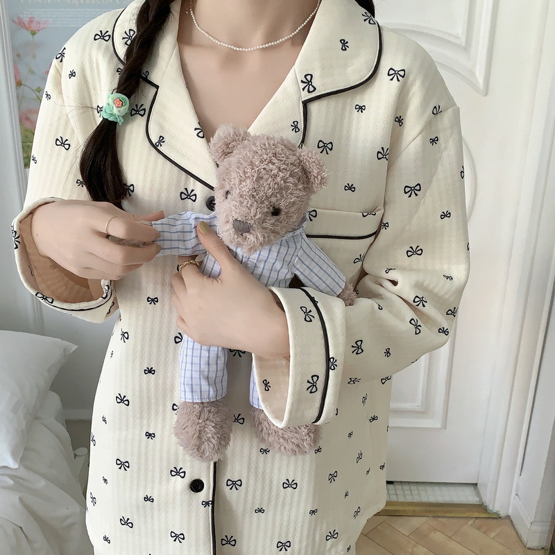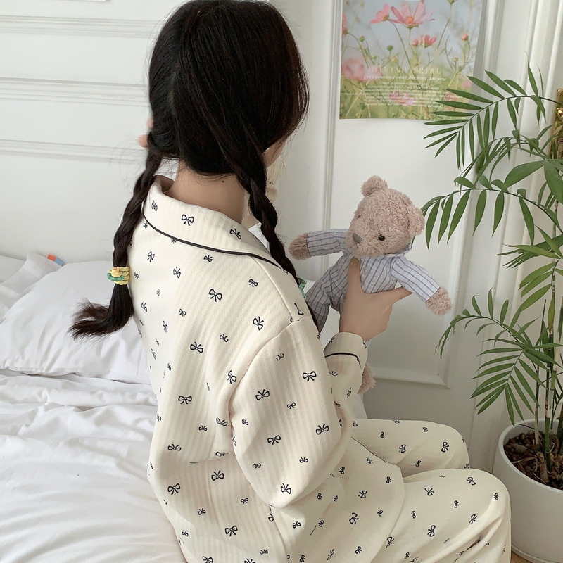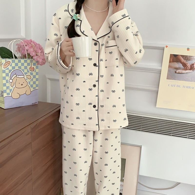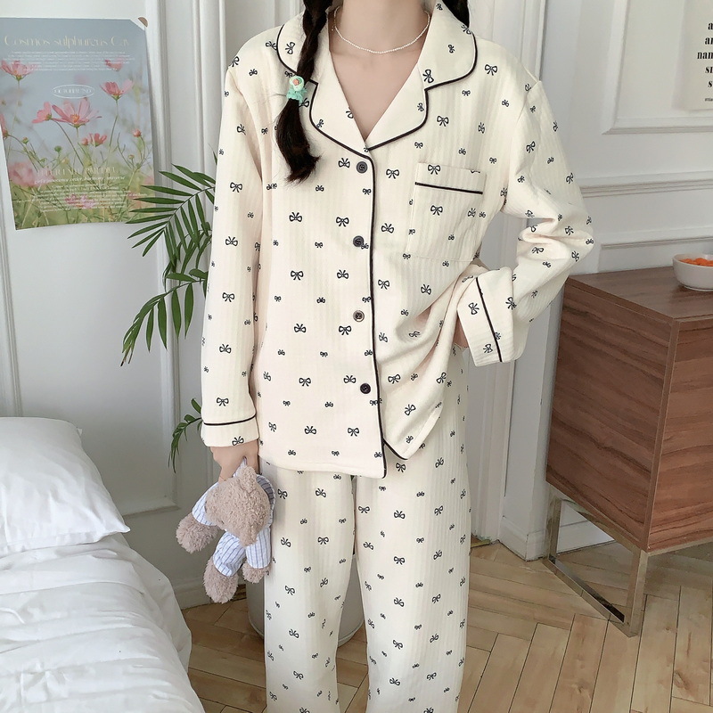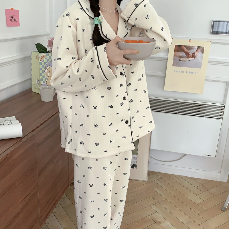 여성의 가을과 겨울 공기 층을위한 국경 간 잠옷 두꺼운 따뜻한 느슨한 홈 착용 긴팔 바지 세트스토어 가기
