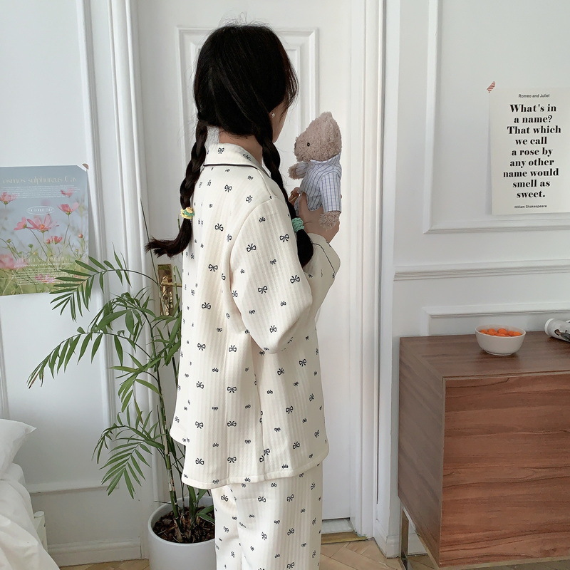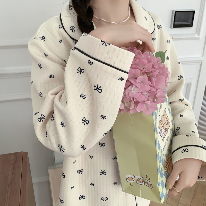 여성의 가을과 겨울 공기 층을위한 국경 간 잠옷 두꺼운 따뜻한 느슨한 홈 착용 긴팔 바지 세트