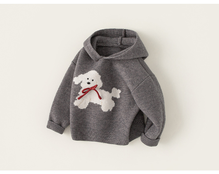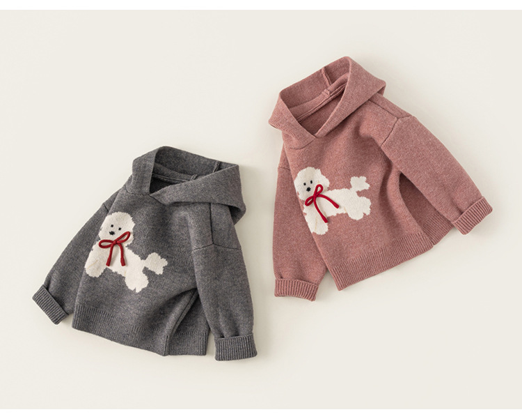 봉 선정한 여자 한국식 아동복 겨울 새 니트웨어 보우 강아지 후드스웨터 풀오버 스웨터 여성의 보물