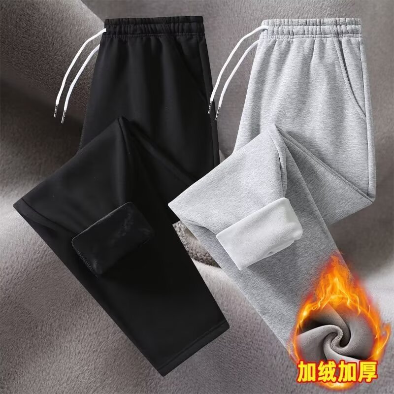 기모 따뜻한 스포츠 바지 남자 가을과 겨울 느슨한 스트레이트 바지 겨울 두꺼운 남자 캐주얼 스트레이트 바지 긴 바지
