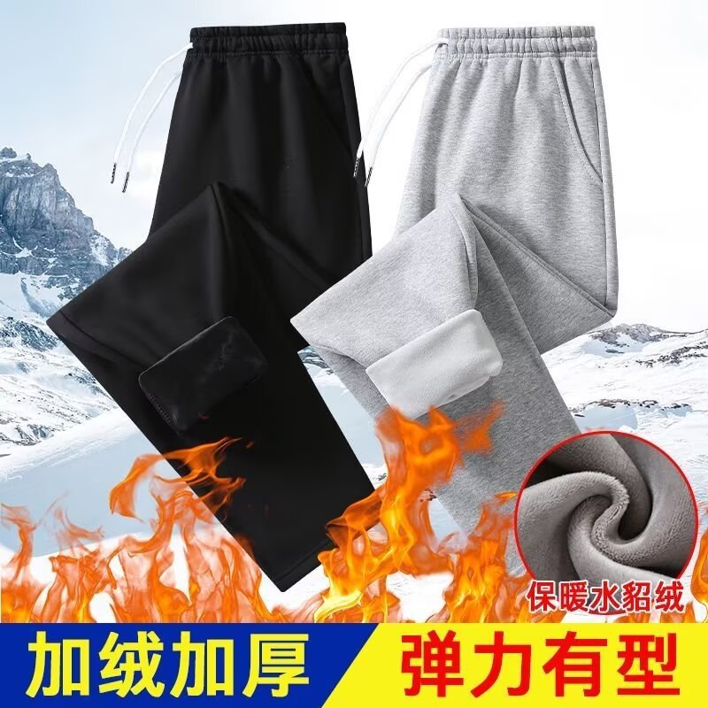 기모 따뜻한 스포츠 바지 남자 가을과 겨울 느슨한 스트레이트 바지 겨울 두꺼운 남자 캐주얼 스트레이트 바지 긴 바지스토어 가기