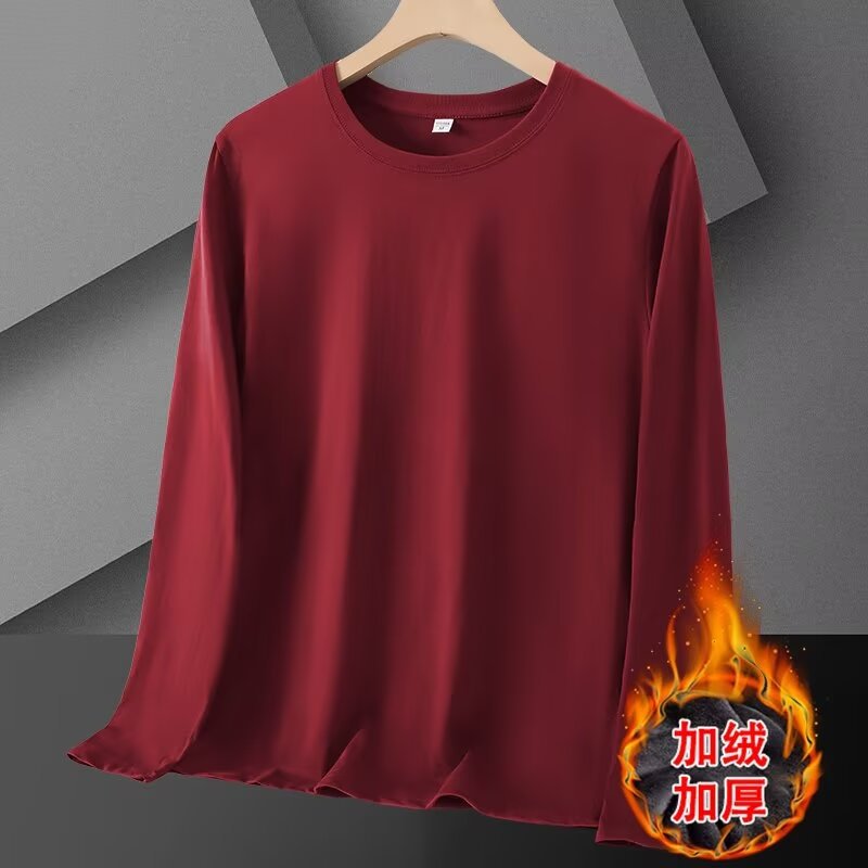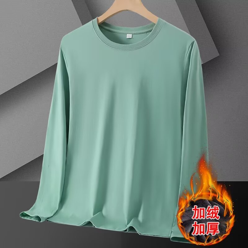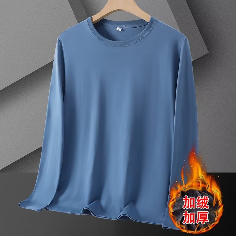 두꺼운 따뜻한 단색 탑 옷 남성용 긴팔 티셔츠 샌딩 가을과 겨울 속옷 기모 베이스 셔츠