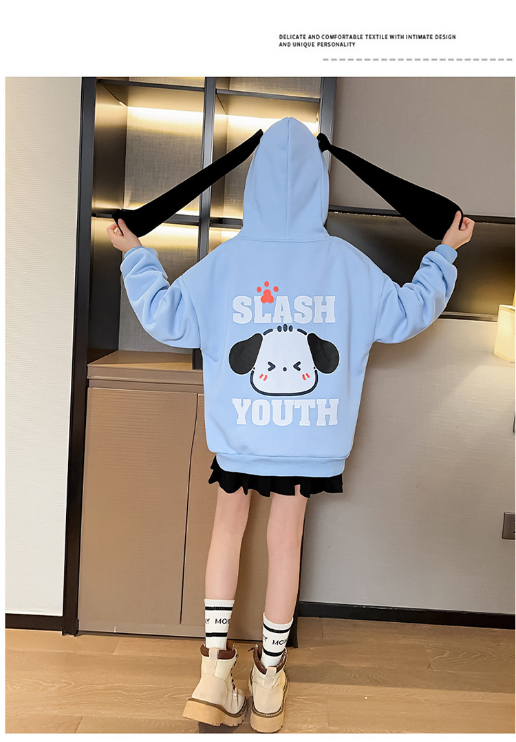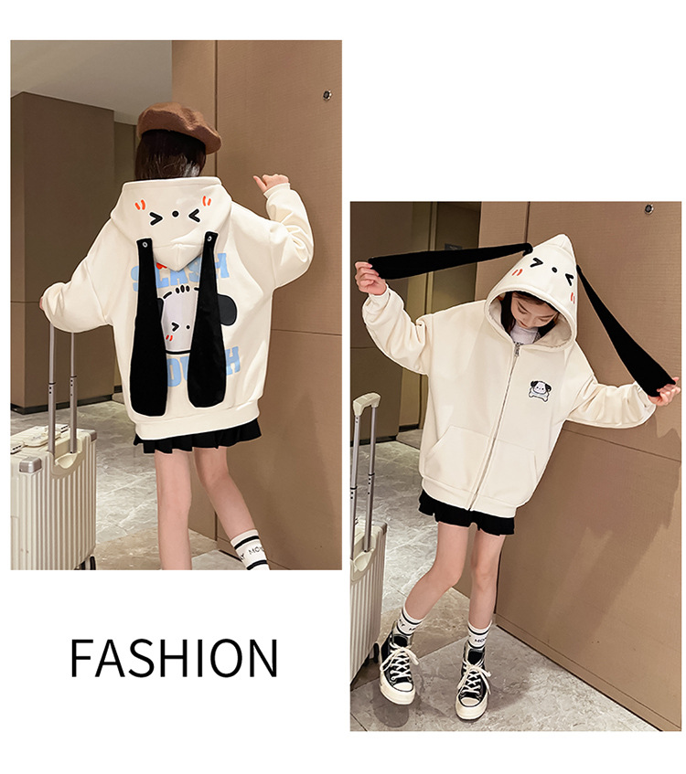소녀 코트 가을과 겨울 2024 새로운 서양식 기모 두꺼운 후드 어린이 스웨터 긴 귀 카디건 트렌디스토어 가기