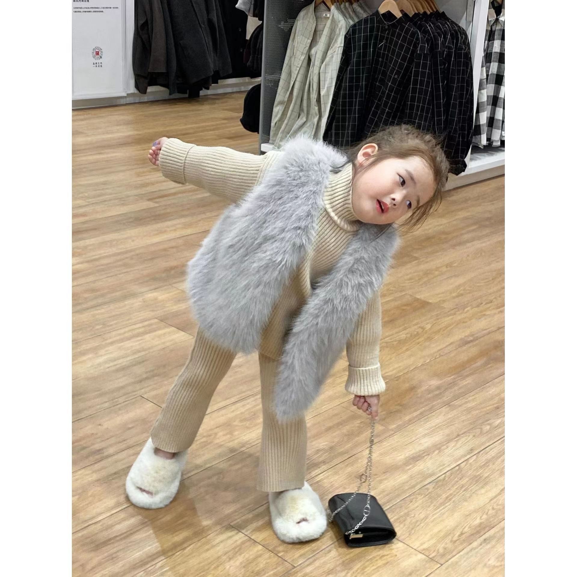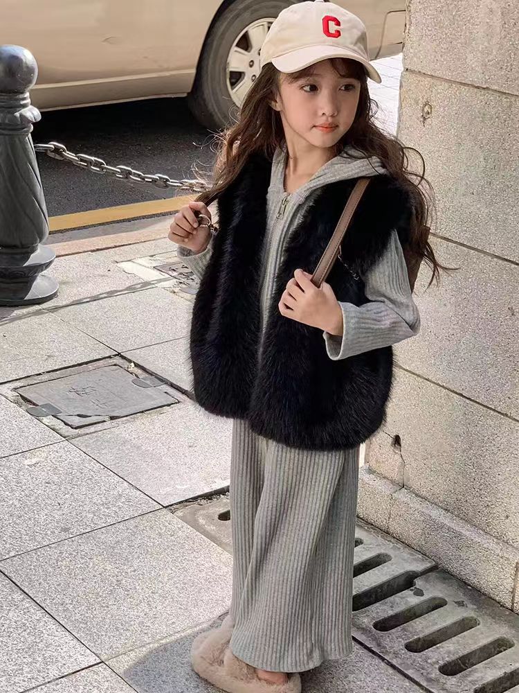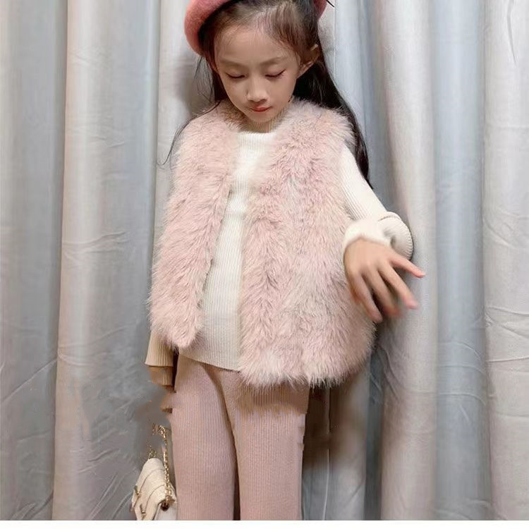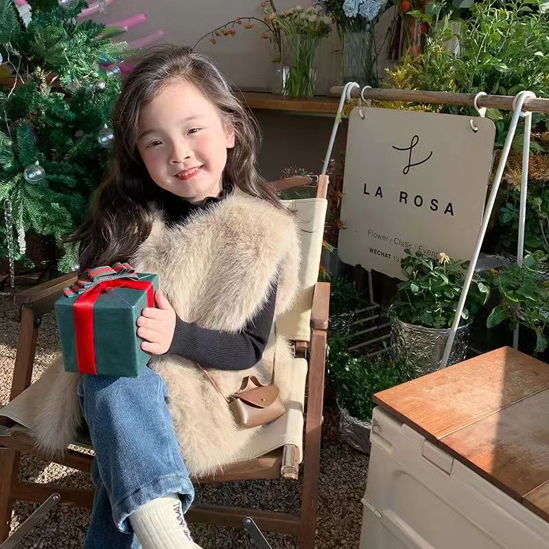 2022 새로운 Toca 모피 어린이 모피 조끼 겨울 두꺼운 외장 허리 코트 스타일 같은 조끼 아기 코트스토어 가기