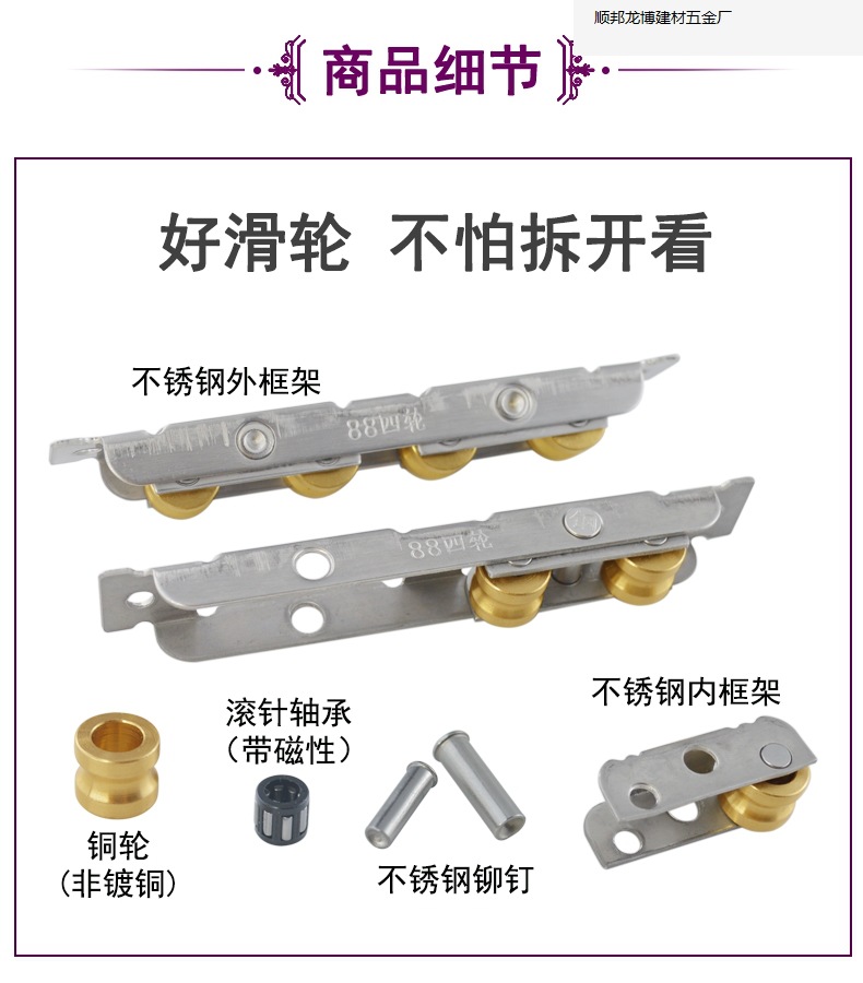 플라스틱 스틸 도어 및 창 도르래 스테인레스 스틸 88 타입 77 슬라이딩 플라스틱 창 가정용 트랙 롤러 유리 베어링 구리 휠 액세서리스토어 가기