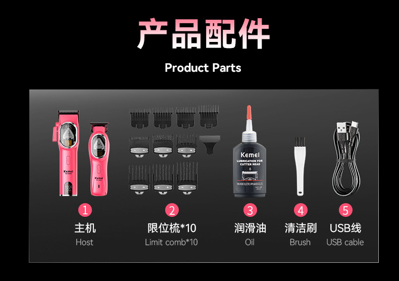 科美新款发廊专业子母机电推剪套装数显理发器鬓角雕刻剪理发推子