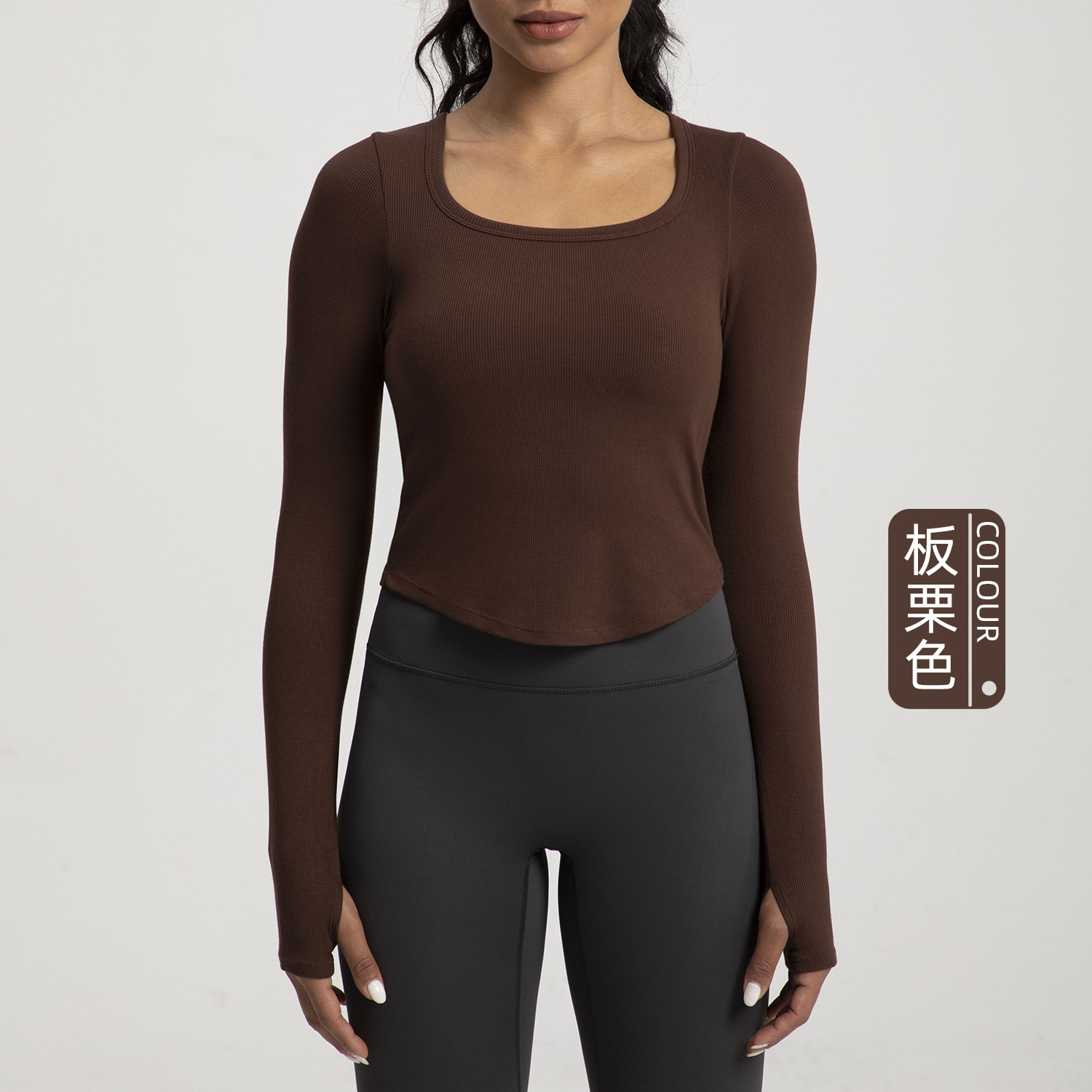 가을과 겨울 새로운 요가 의류 여성 원피스 컵 가슴 패드 알몸 센스 슬림 핏 슬리밍 티셔츠 스포츠 피트니스 긴팔 탑스토어 가기