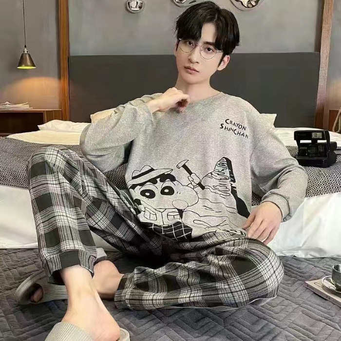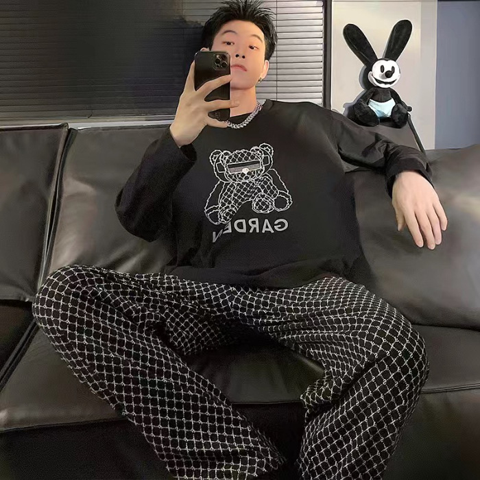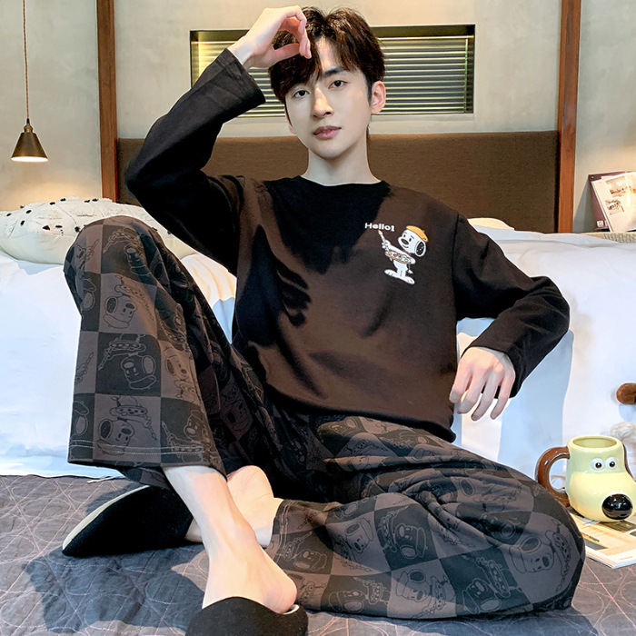 플러스 사이즈 잠옷 남자 봄과 가을 새로운 풀오버 긴 소매 느슨한 한국 스타일 캐주얼 스포츠 겉옷 홈 옷