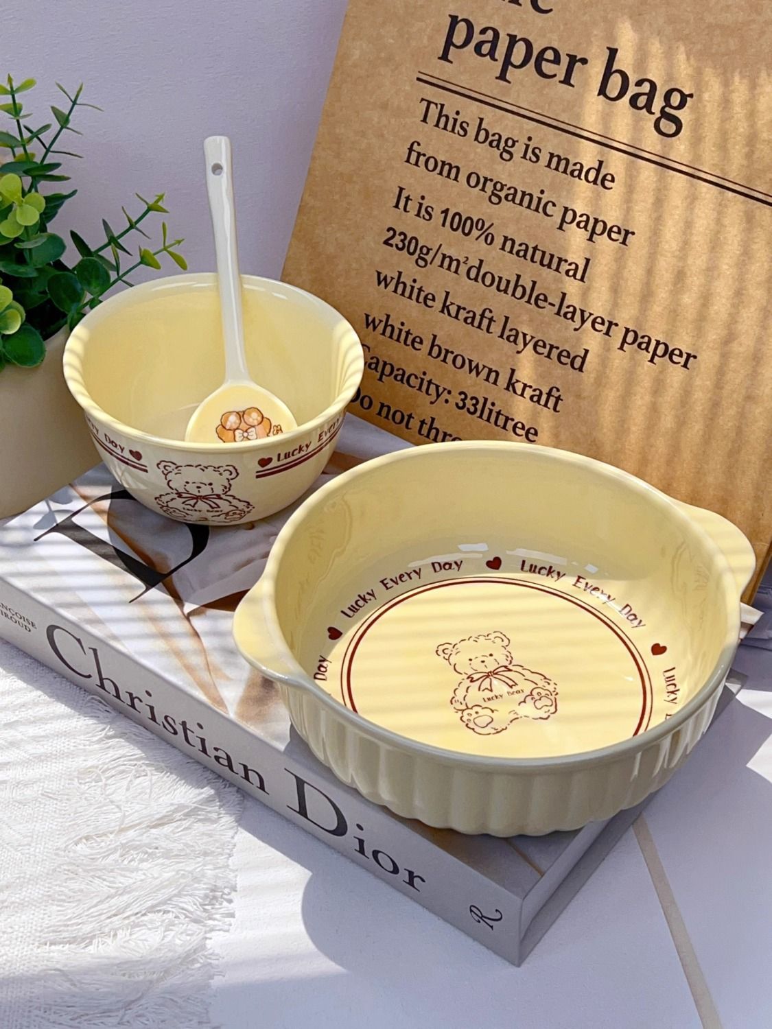 크림 베어 7.5 인치 바이노럴 세라믹 살라 보울 유약 컬러 학생 귀여운 홈 고가 대형 국수 그릇