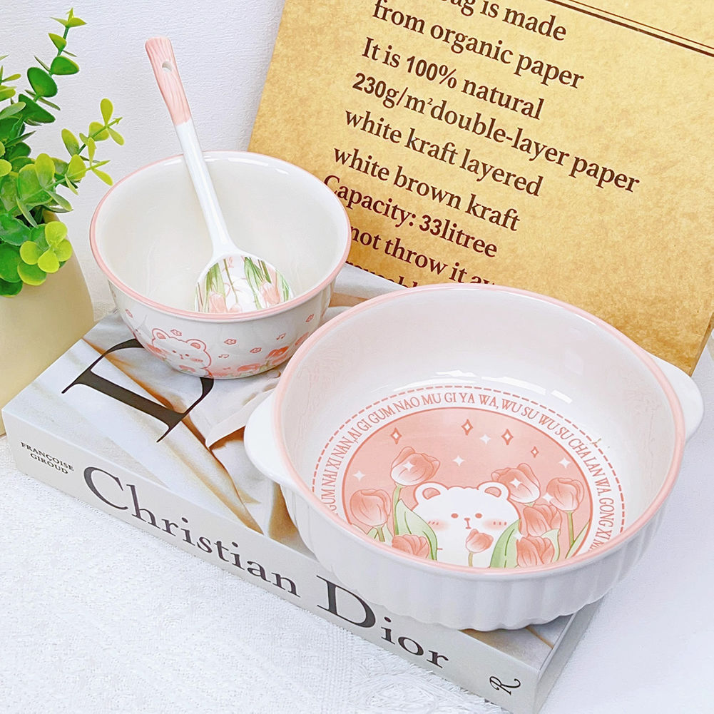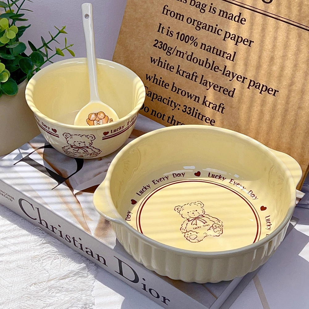 크림 베어 7.5 인치 바이노럴 세라믹 살라 보울 유약 컬러 학생 귀여운 홈 고가 대형 국수 그릇스토어 가기