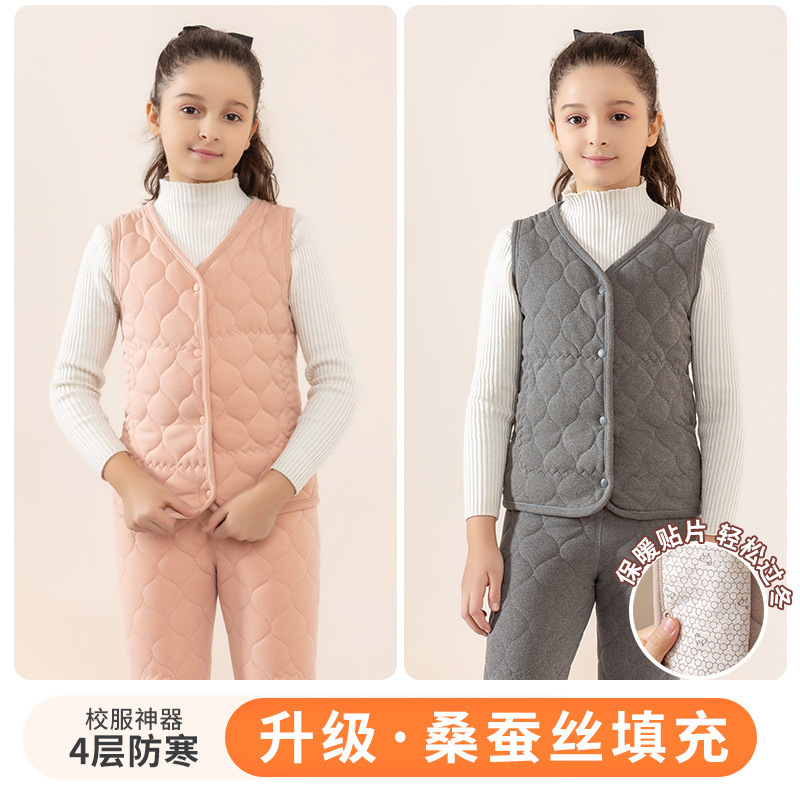 어린이 의류 가을 겨울 조끼 소년 소녀 학교 제복 기모 두꺼운 기지 따뜻한 조끼 아기 허리 코트