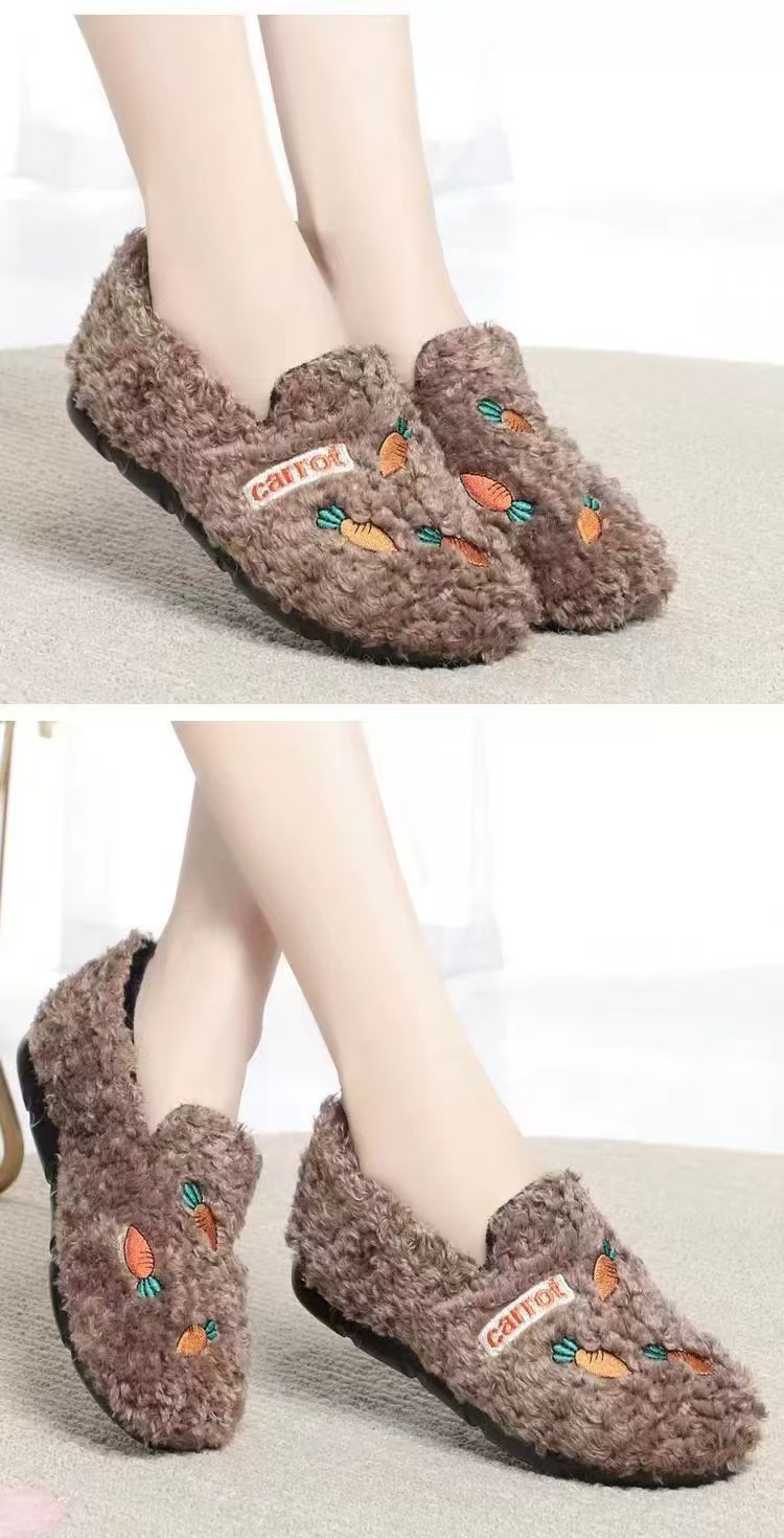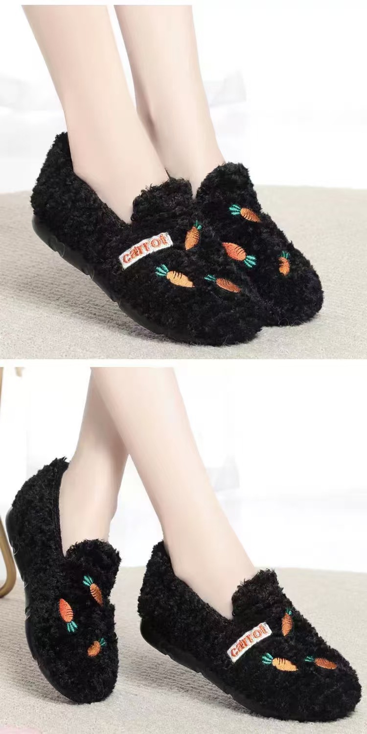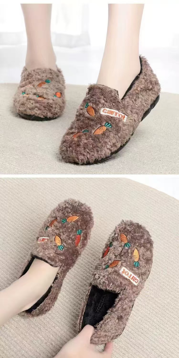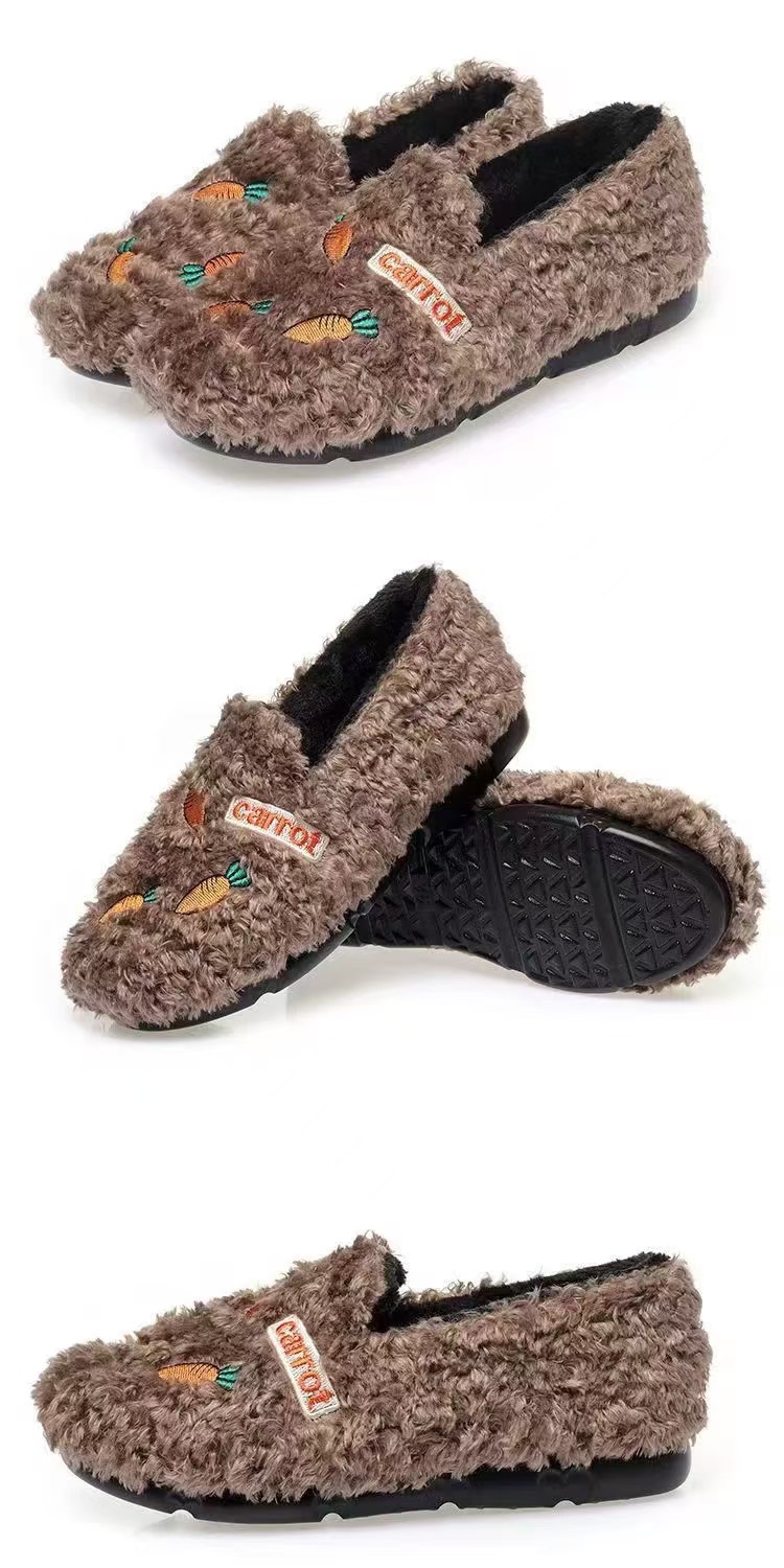 겨울 여성 신발 2024 새로운 올 매치 콩 신발 캐주얼 패션 기모 두꺼운 미끄럼 방지 편안한 여성면 신발 도매