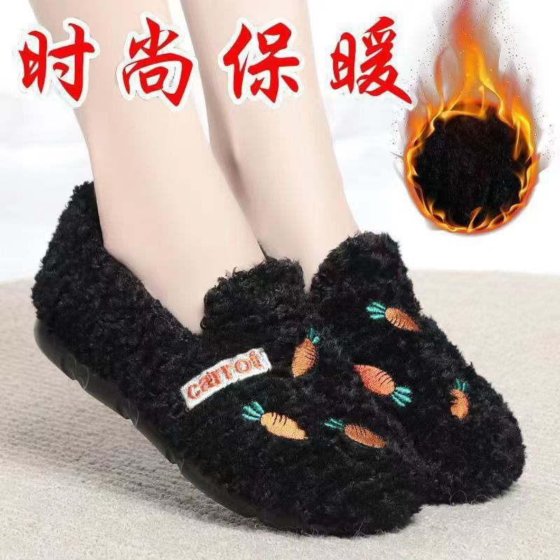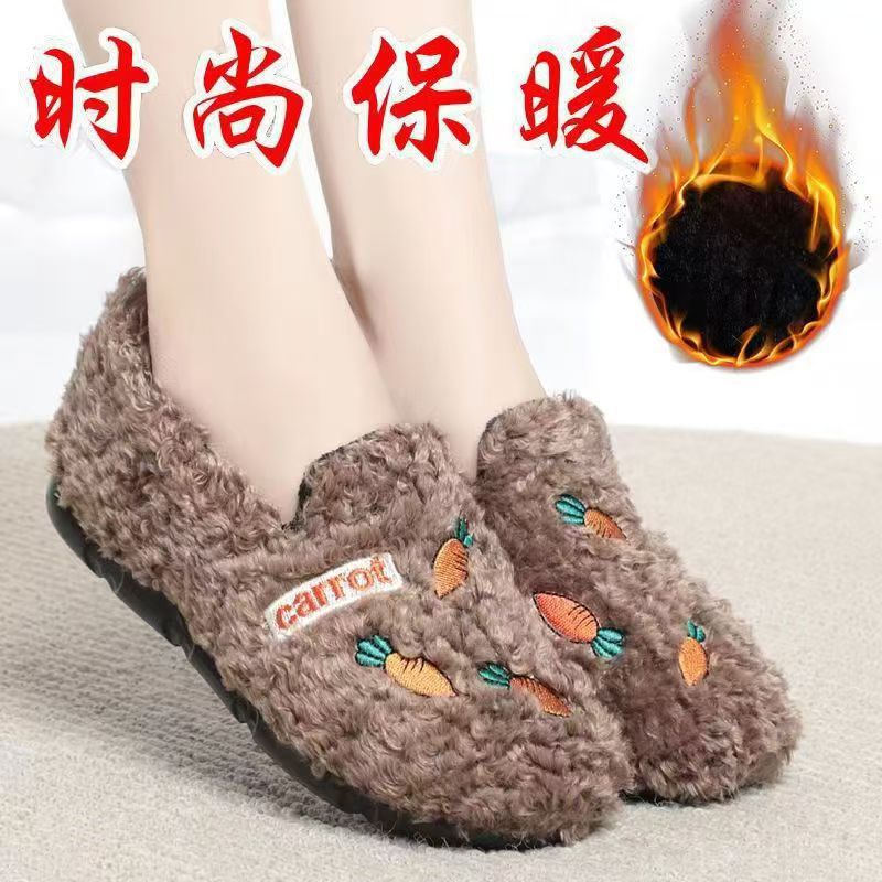 겨울 여성 신발 2024 새로운 올 매치 콩 신발 캐주얼 패션 기모 두꺼운 미끄럼 방지 편안한 여성면 신발 도매스토어 가기