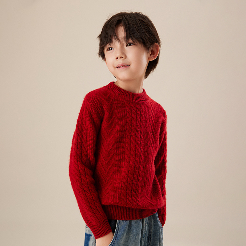 가을과 겨울 어린이 두꺼운 무거운 크루 넥 캐시미어 니트 스웨터 한국 패션 트위스트 스웨터베이스 셔츠
