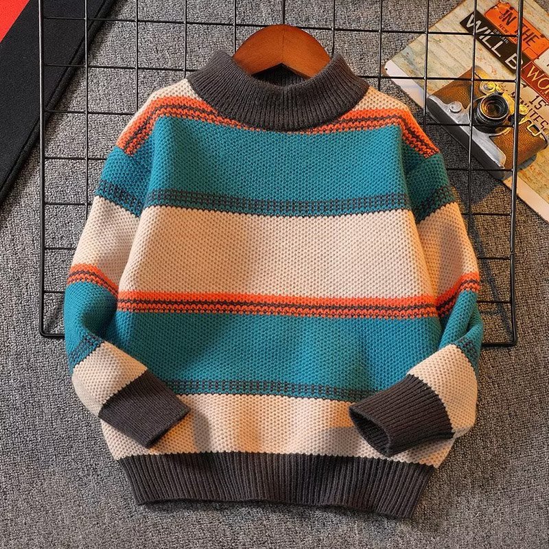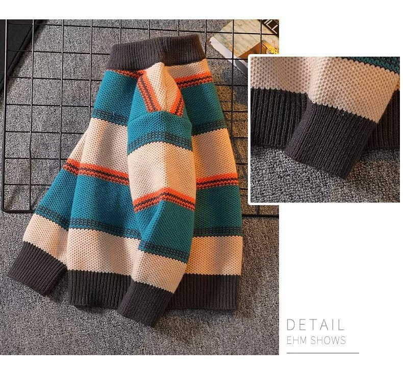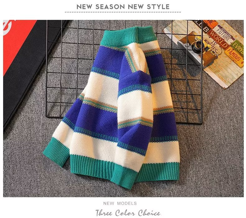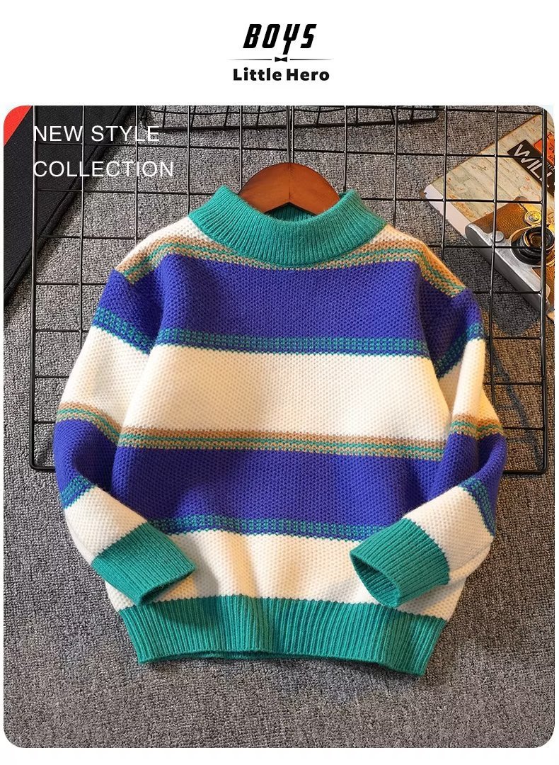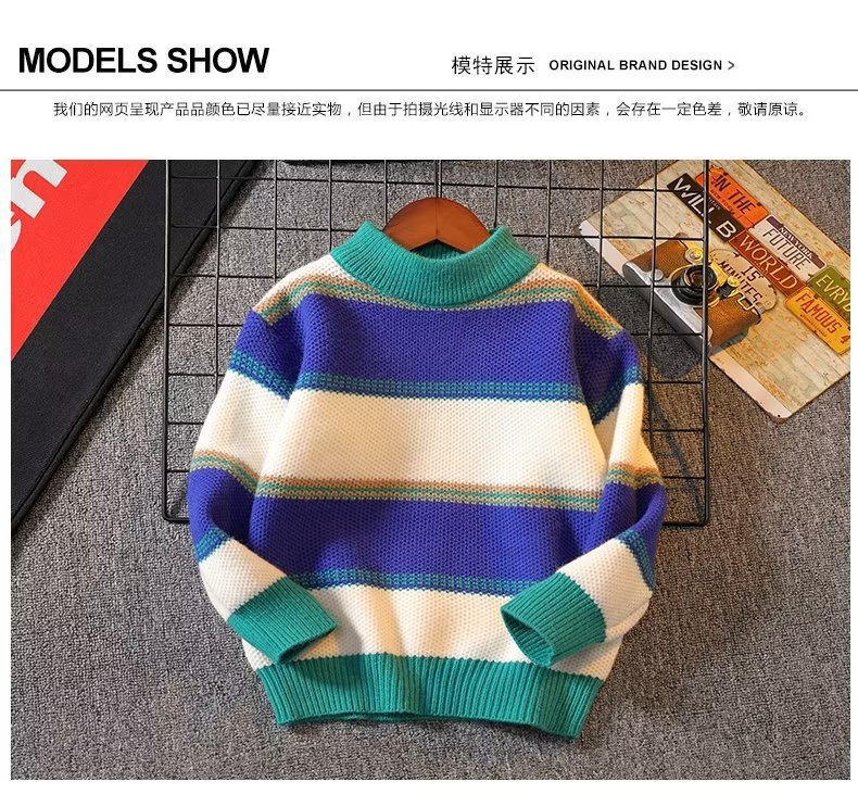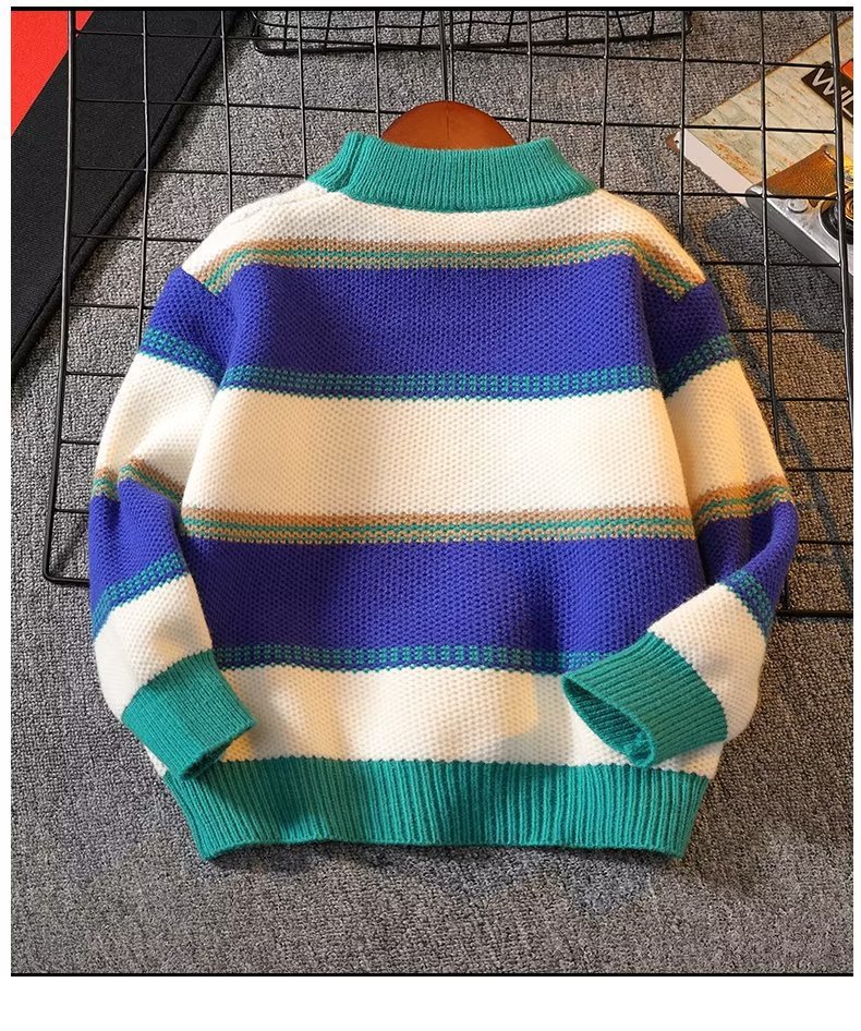 어린이 얇은 스웨터 봄과 가을 소년 줄무늬 니트웨어 가을 옷 큰 어린이 아기 풀오버 탑 스웨터 겨울