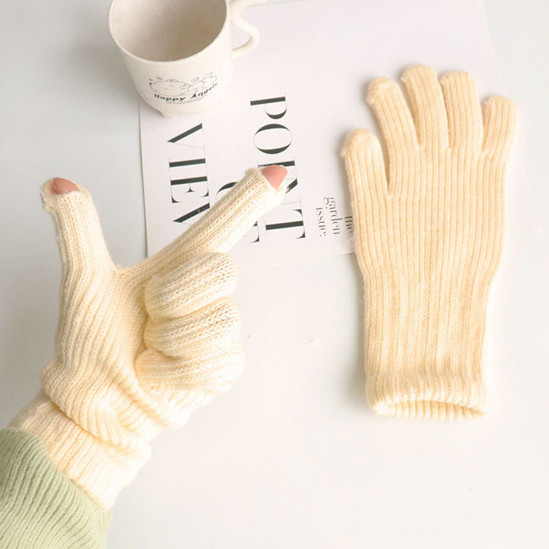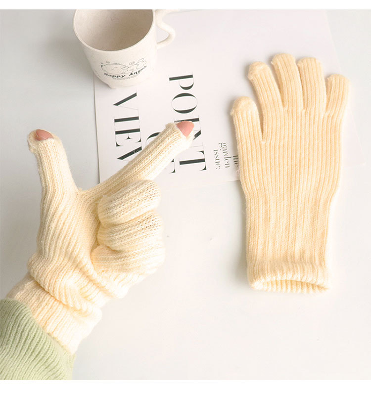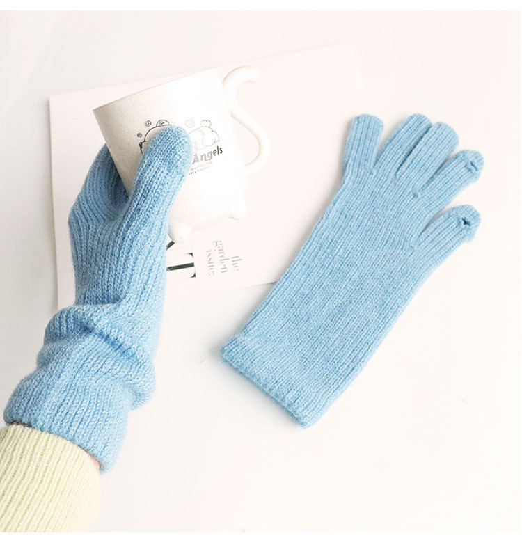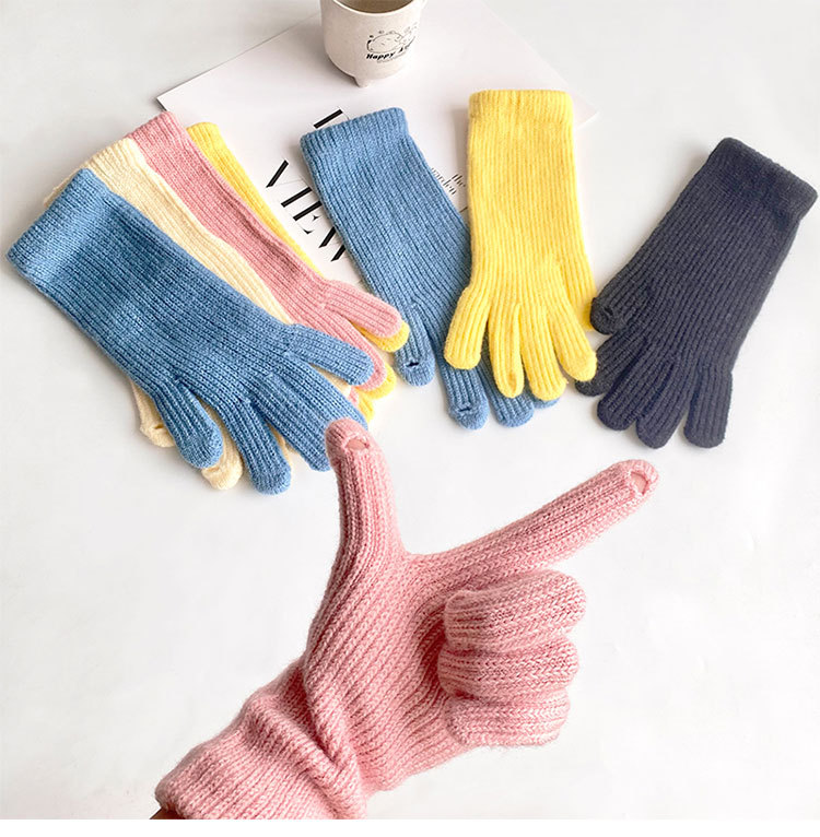단색 모직 니트 한국식 장갑, 손가락 분리형, 터치스크린 가능, 방한, 손목 보호, 가을 겨울 보온, 성인용스토어 가기