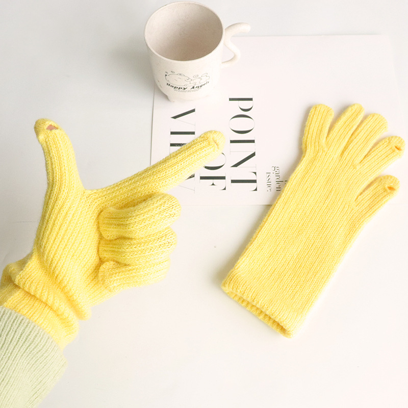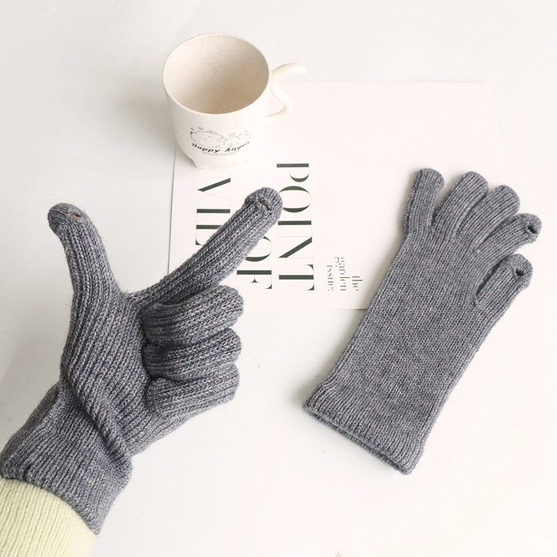 단색 모직 니트 한국식 장갑, 손가락 분리형, 터치스크린 가능, 방한, 손목 보호, 가을 겨울 보온, 성인용