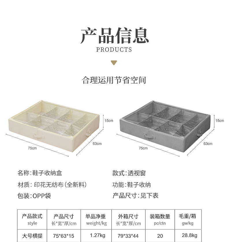 스토리지 박스 비주얼 방진 새로운 가정용 대용량 의류 주최자 이동식 침대 바닥 분할 신발 상자
