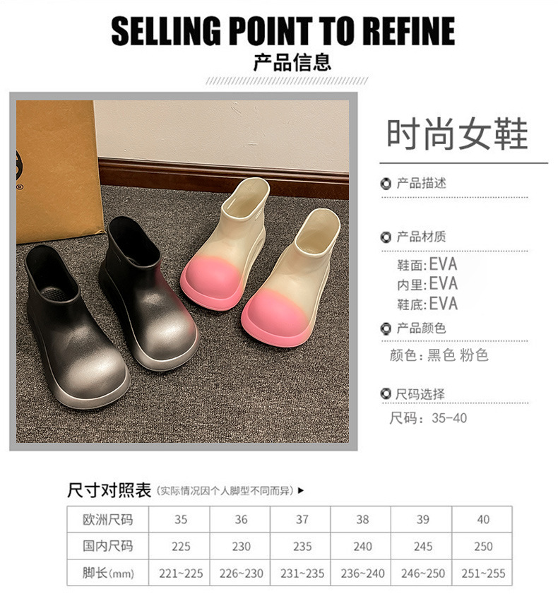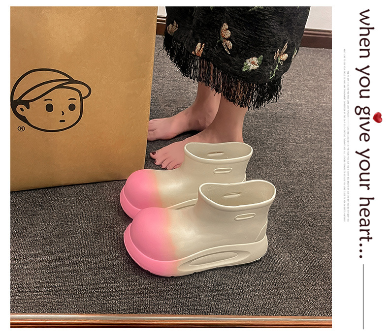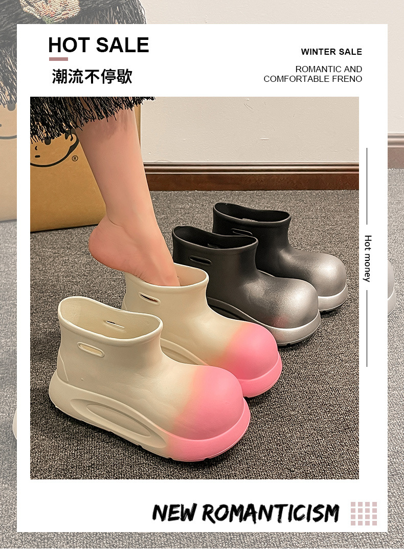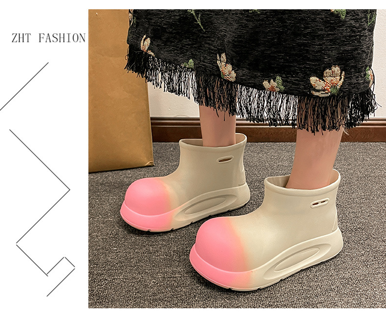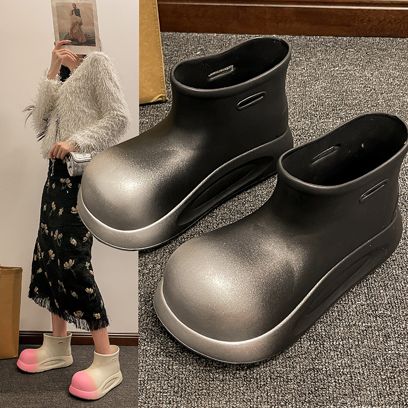 여성용 유행 장화 방수 미끄럼 방지 매체 및 짧은 장화 두꺼운 밑창 고무 신발 여성용 여름 장화스토어 가기
