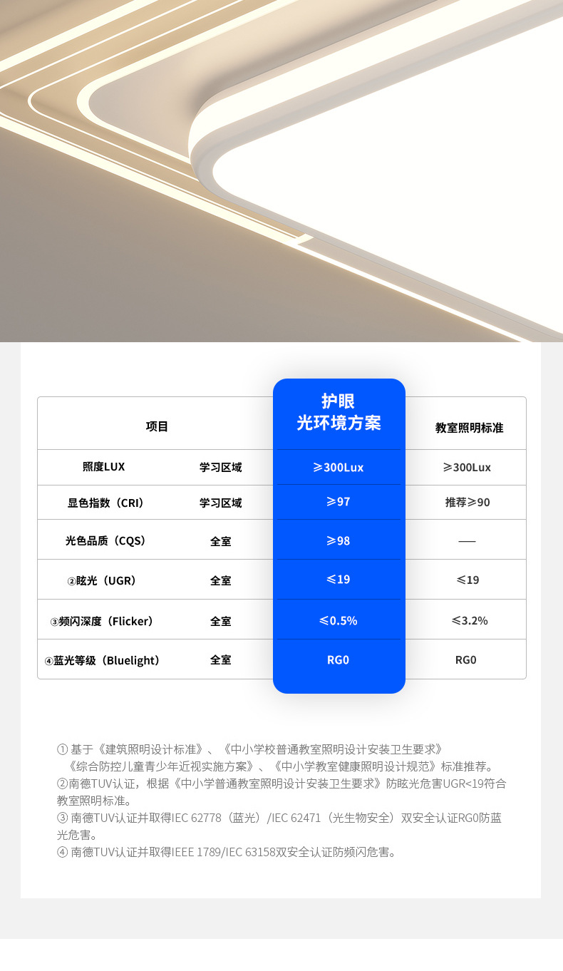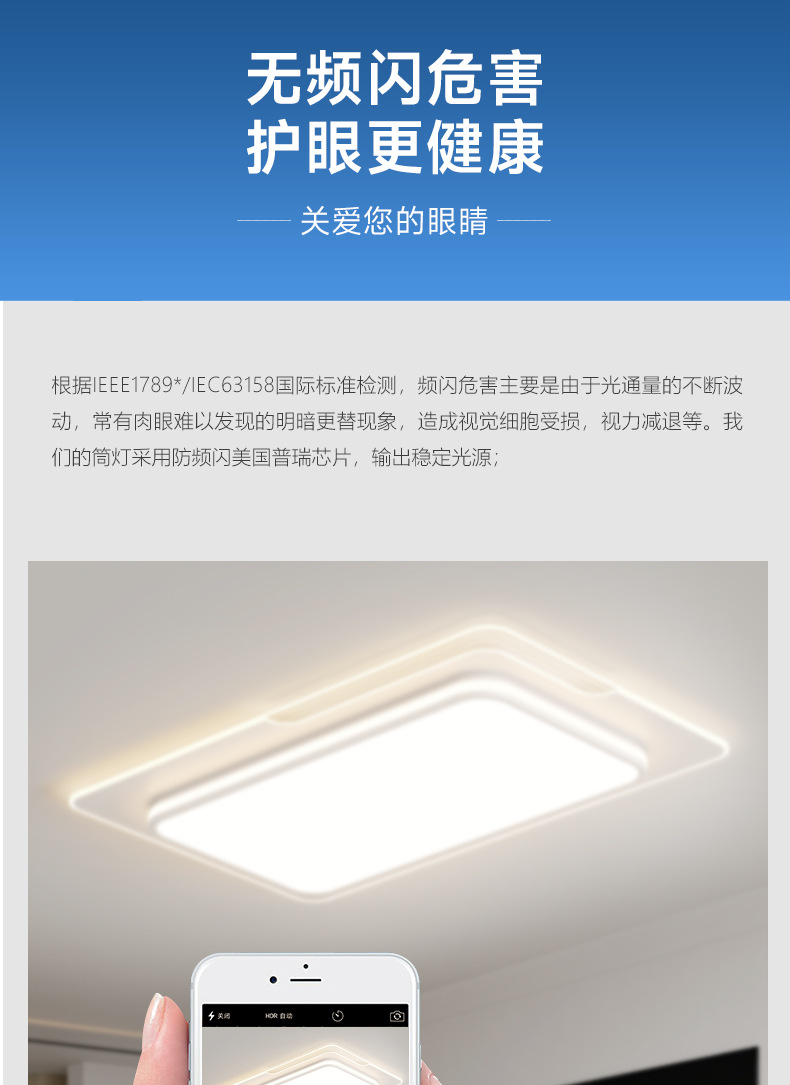 크림 스타일 현대 간단한 전체 스펙트럼 눈 보호 실내 천장 램프