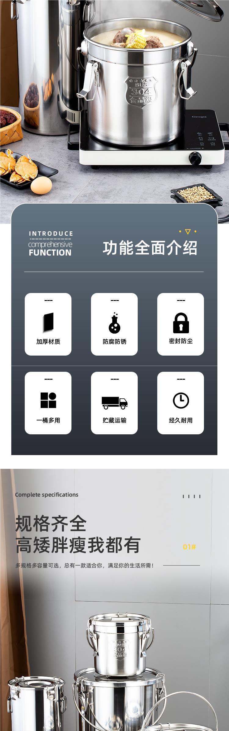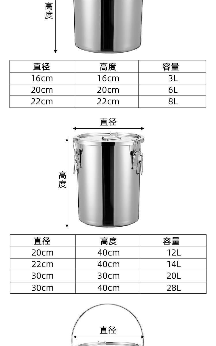 304 스테인레스 스틸 밀봉 된 양동이 음식 배달 유치원 양동이 고무 링 수프 양동이 달린 운송용 오일 버킷 쌀 버킷스토어 가기