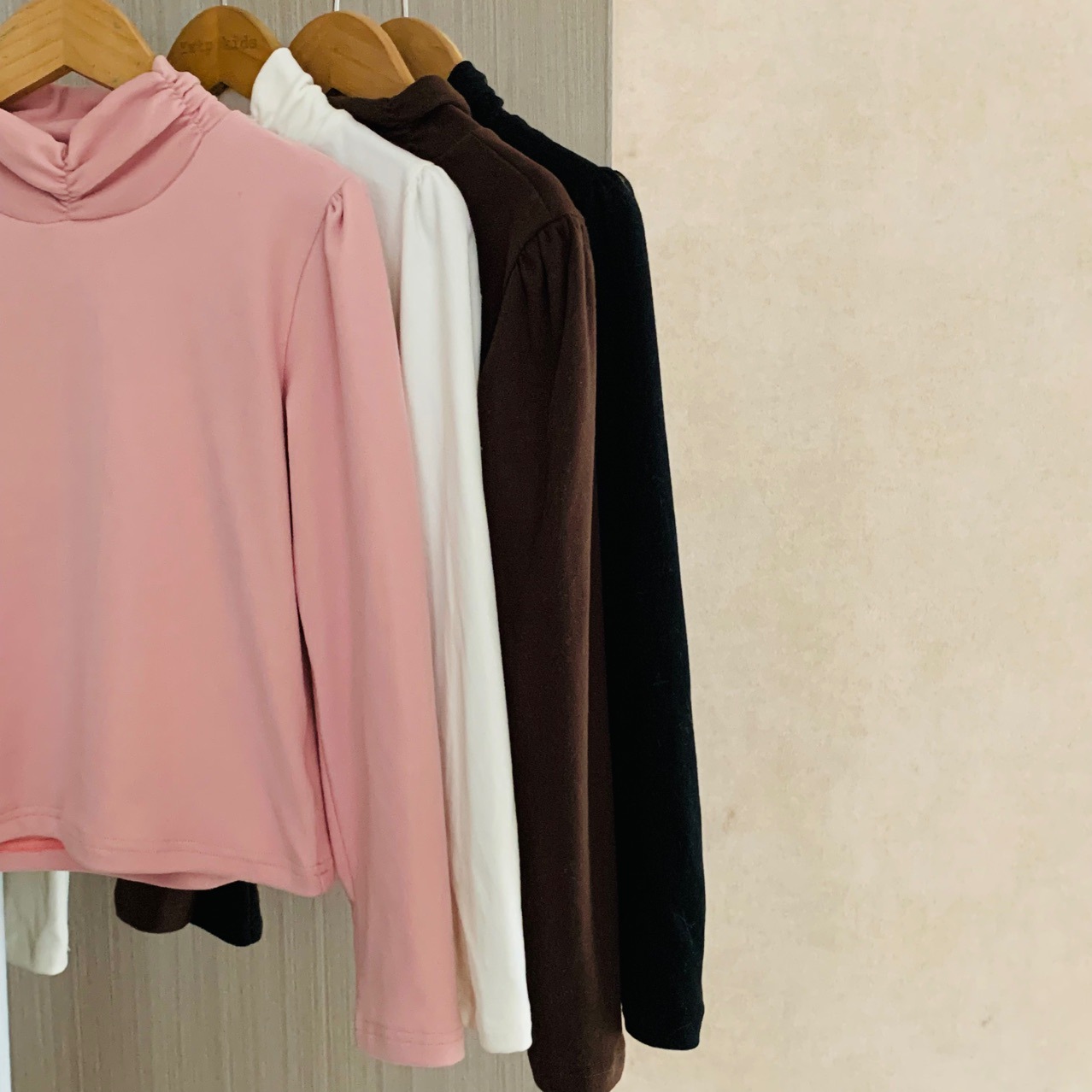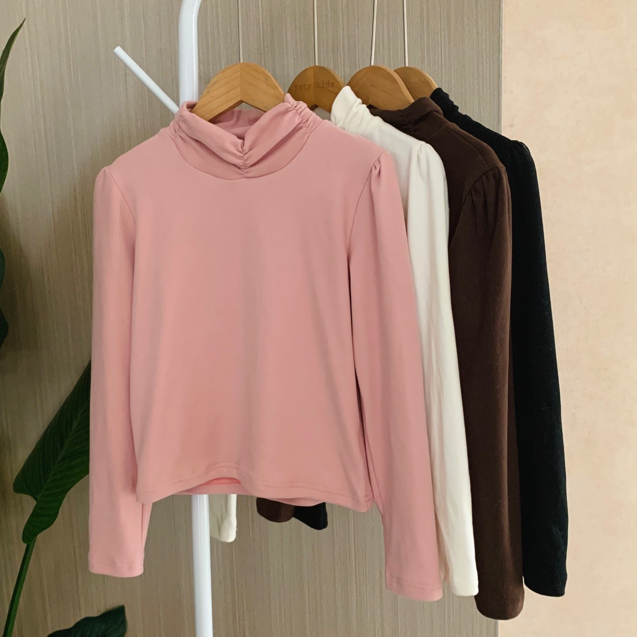 겨울 긴팔 여자 티셔츠 2024 겨울 새 두꺼운 벨벳 여성 최고의 한국식 슬림핏 하이 칼라 베이스 셔츠스토어 가기