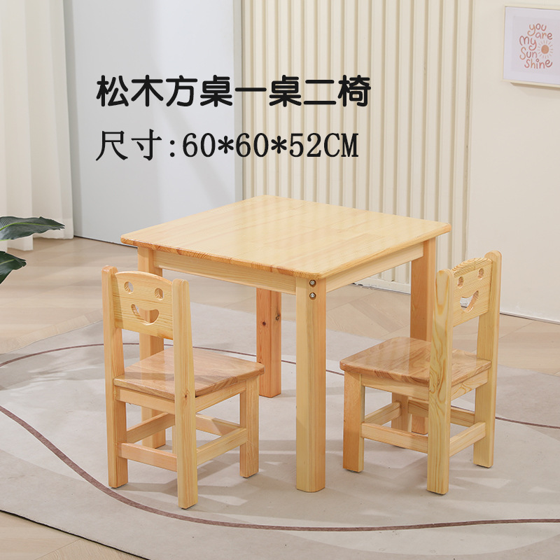 • 소나무 사각 테이블 테이블 1개 + 의자 2개