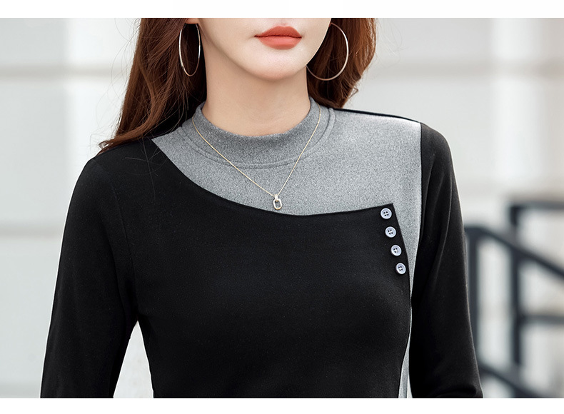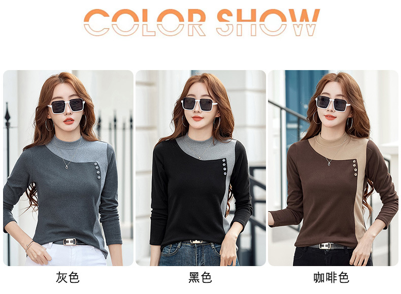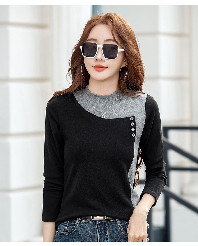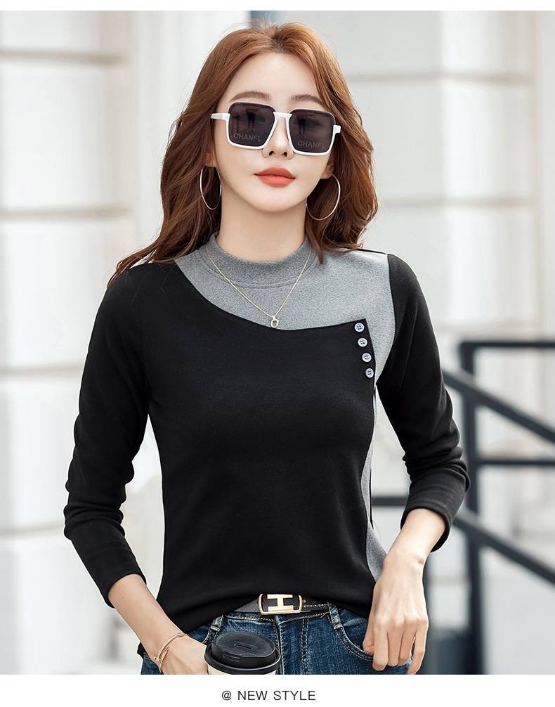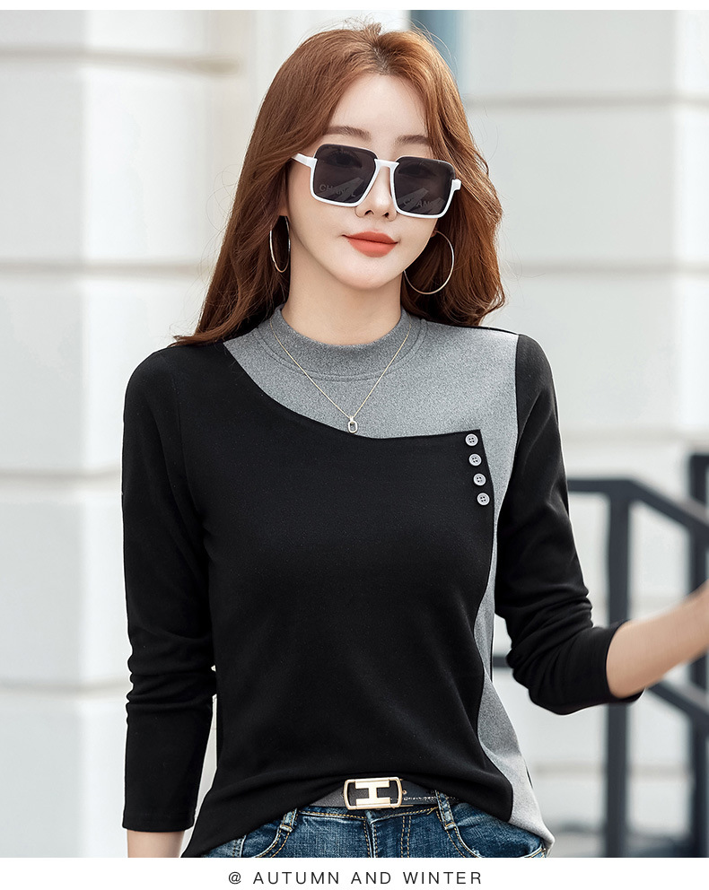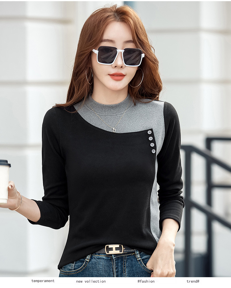 기모 한국식 슬림베이스 셔츠 가을과 겨울 따뜻한 긴팔 티셔츠 여성의 2024 새로운 솔리드 컬러 올 매치 탑 옷