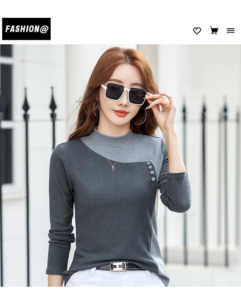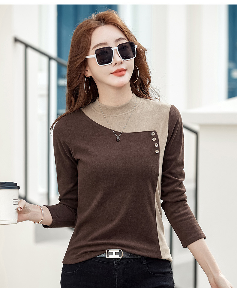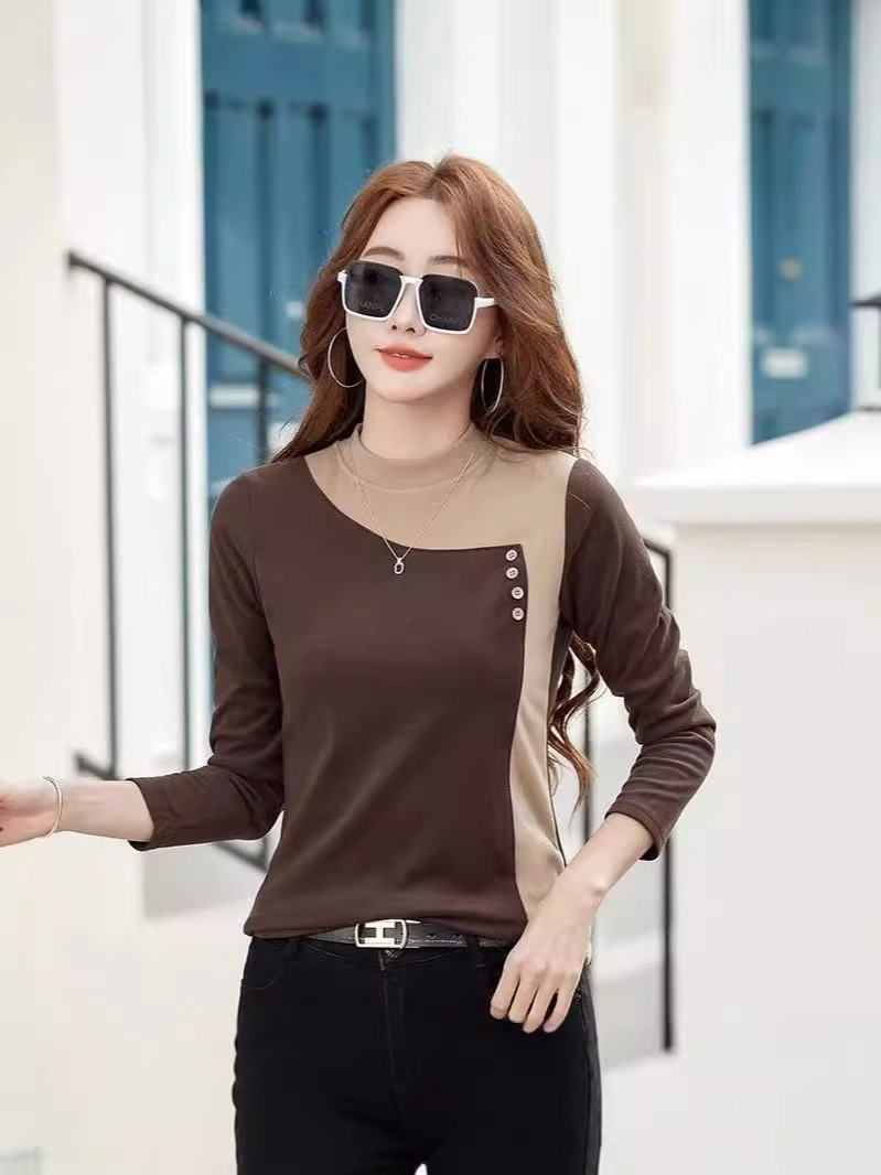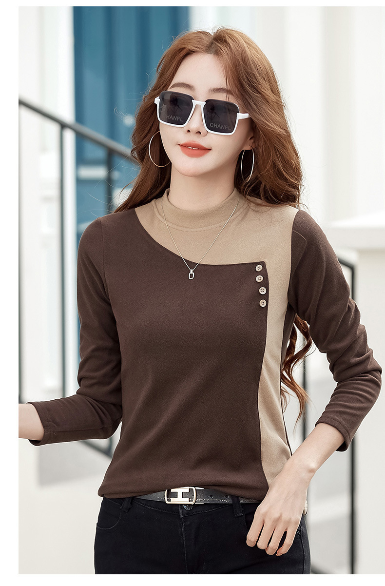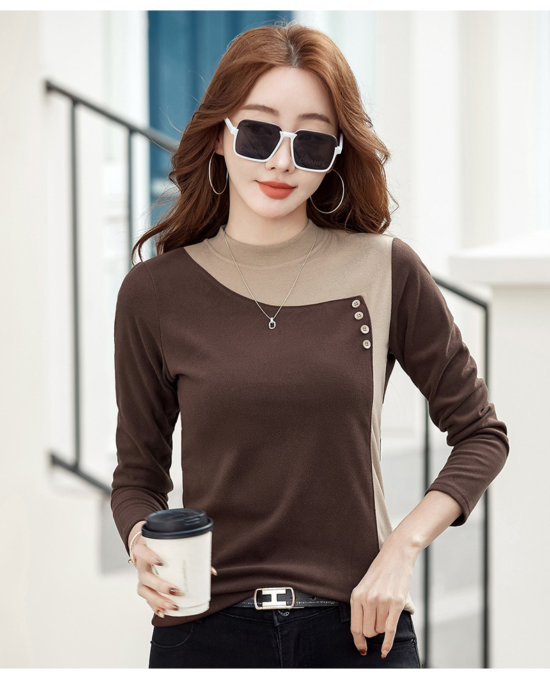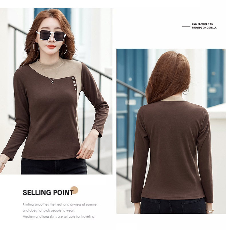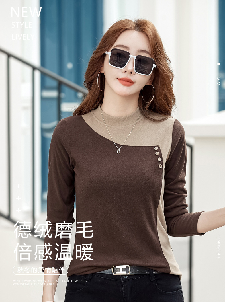 기모 한국식 슬림베이스 셔츠 가을과 겨울 따뜻한 긴팔 티셔츠 여성의 2024 새로운 솔리드 컬러 올 매치 탑 옷스토어 가기