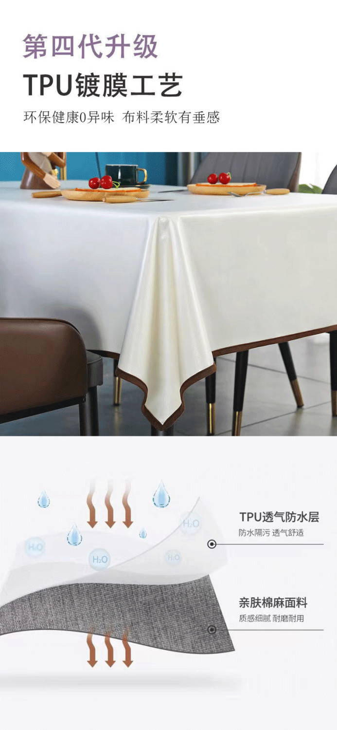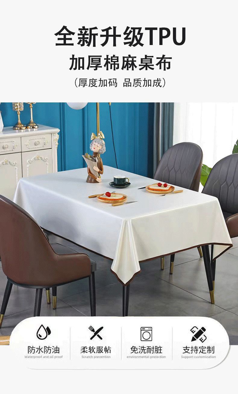 두꺼운 식탁보 방수 및 내유가없는 북유럽 식탁 직사각형 솔리드 컬러 라이트 럭셔리 코튼 및 리넨 커피 테이블 Jiatai