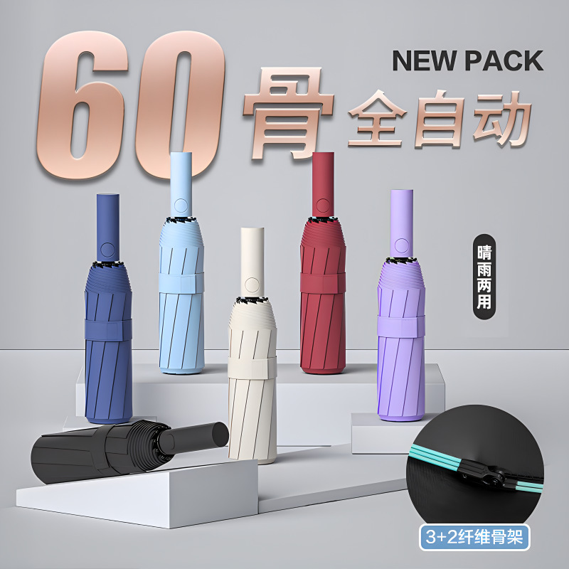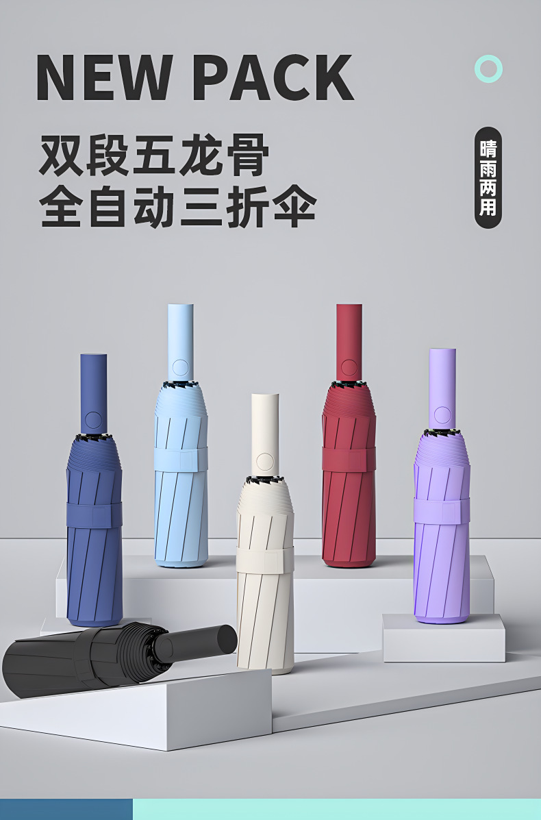 24 뼈 완전 자동 우산 대형 바람 방지 접이식 자외선 차단제 우산 맑고 비가 오는 이중 사용 제조 업체 도매 로고 광고 우산스토어 가기