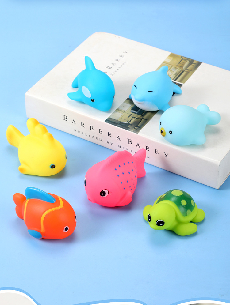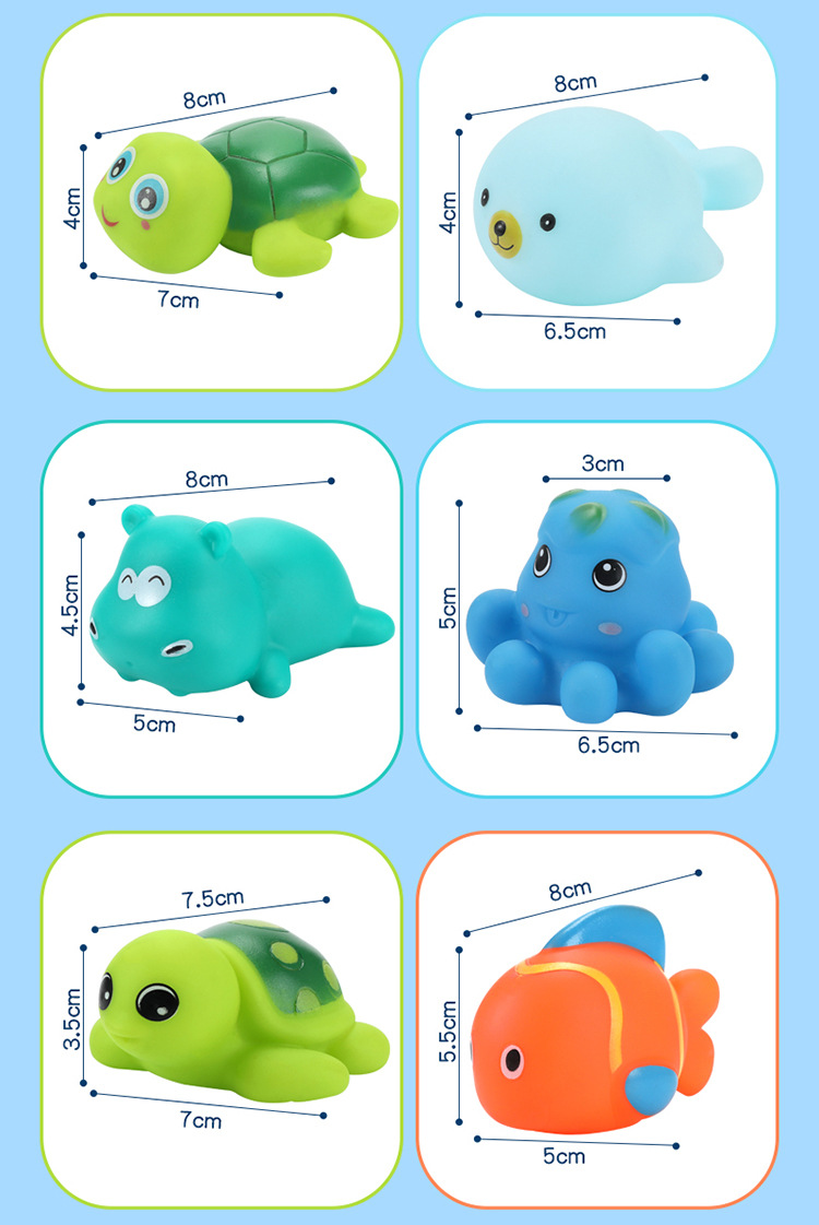 공장 직접 판매 해양 동물 장난감 아기 부드러운 고무 핀치 호출 어린이 물 작은 거북이 상어 복어 세트스토어 가기