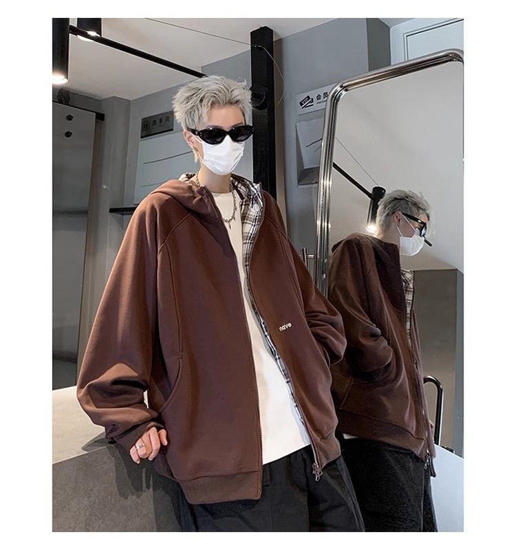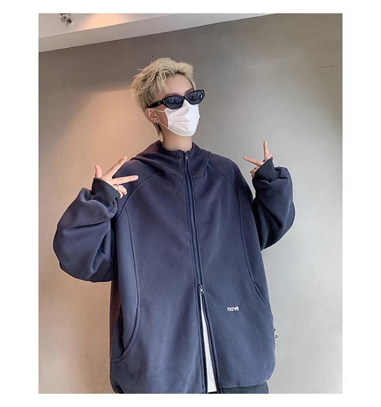 아메리칸 스타일 잘 생긴 헤비 더블 지퍼 후드 카디건 스웨터 남자 가을과 겨울 하이 엔드 느슨한 카디건 캐주얼 자켓스토어 가기