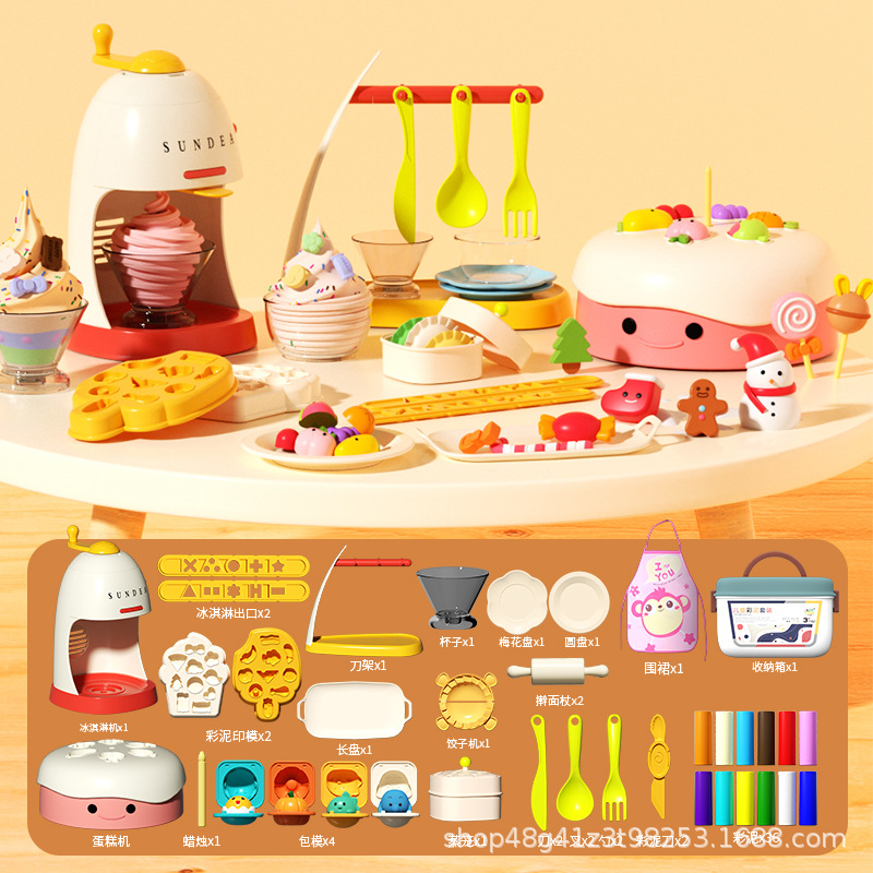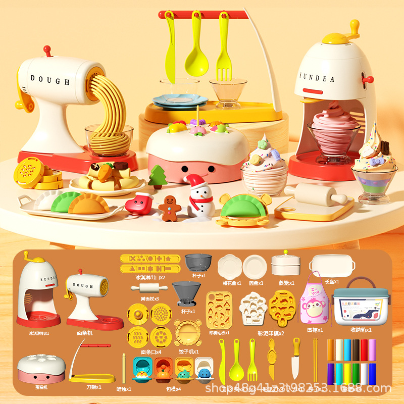 • 디럭스 세트⭐국수 기계 + 아이스크림 기계 + 케이크 기계 + 주방 용품 선반 [진흙 48개] 보관함 + 앞치마 포함