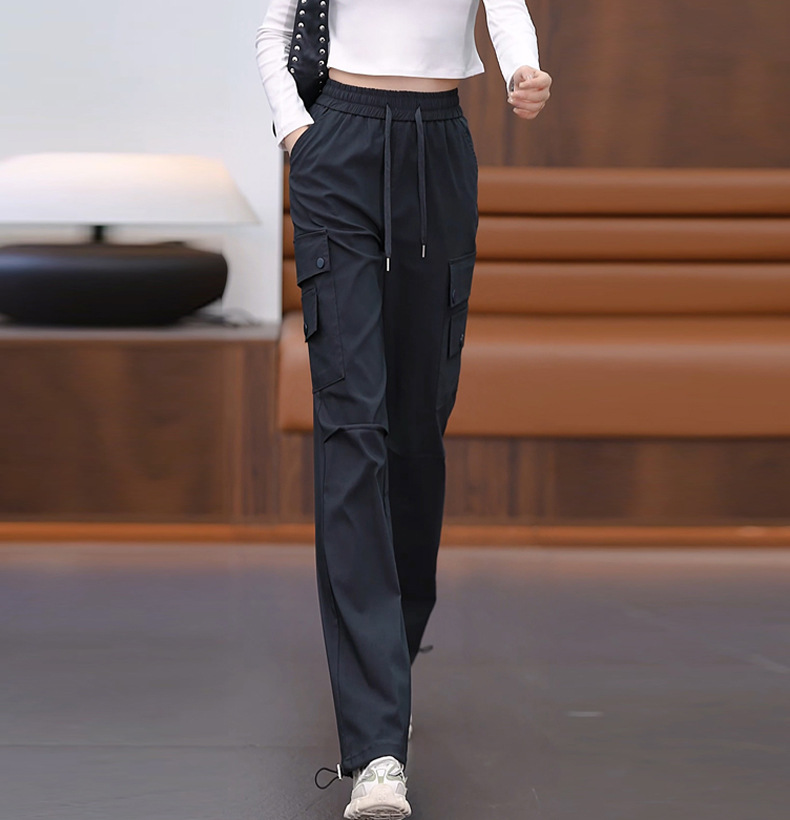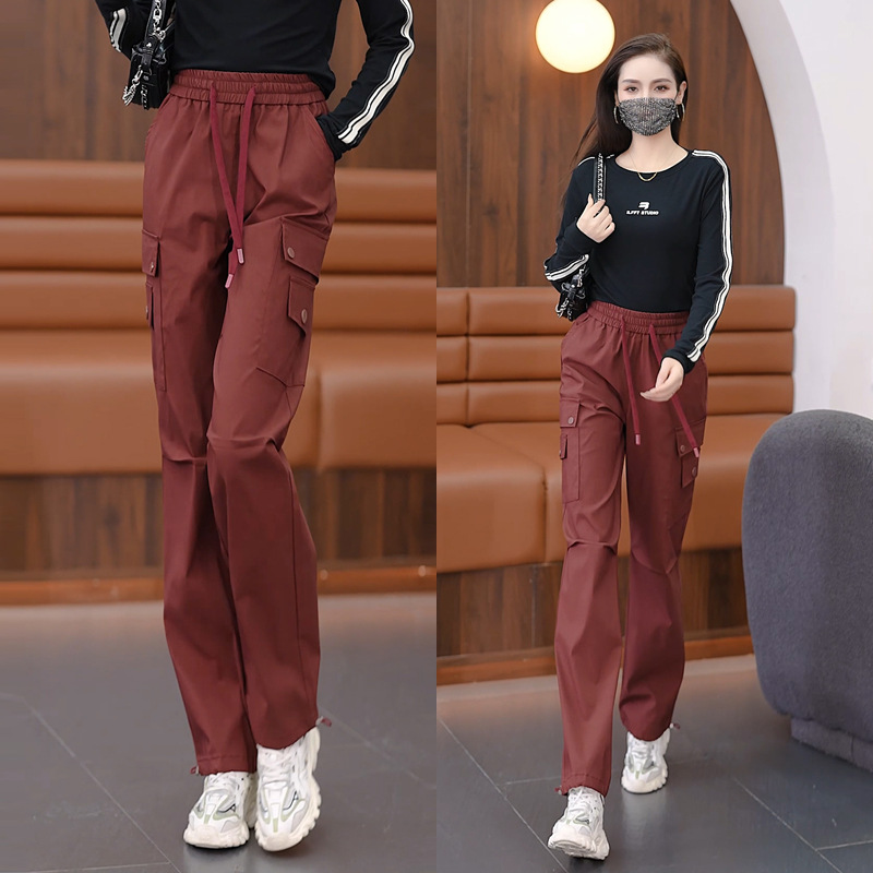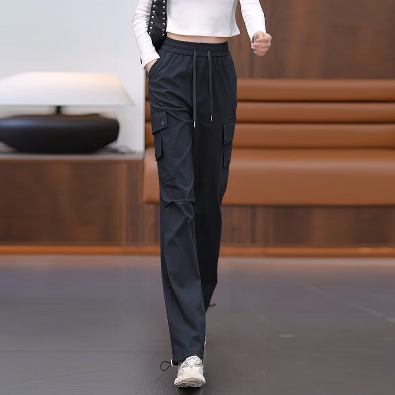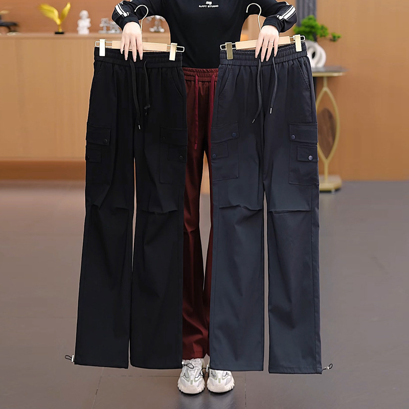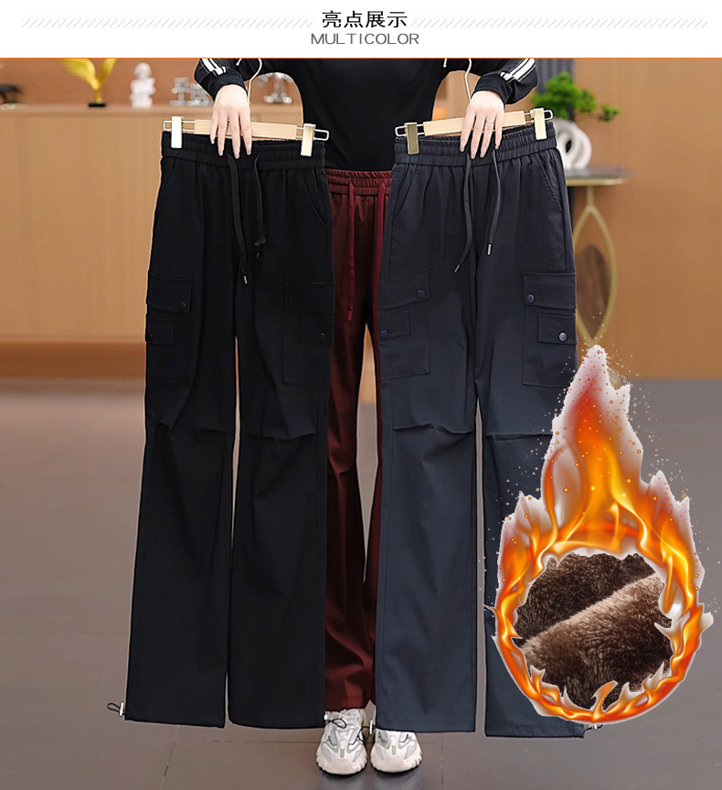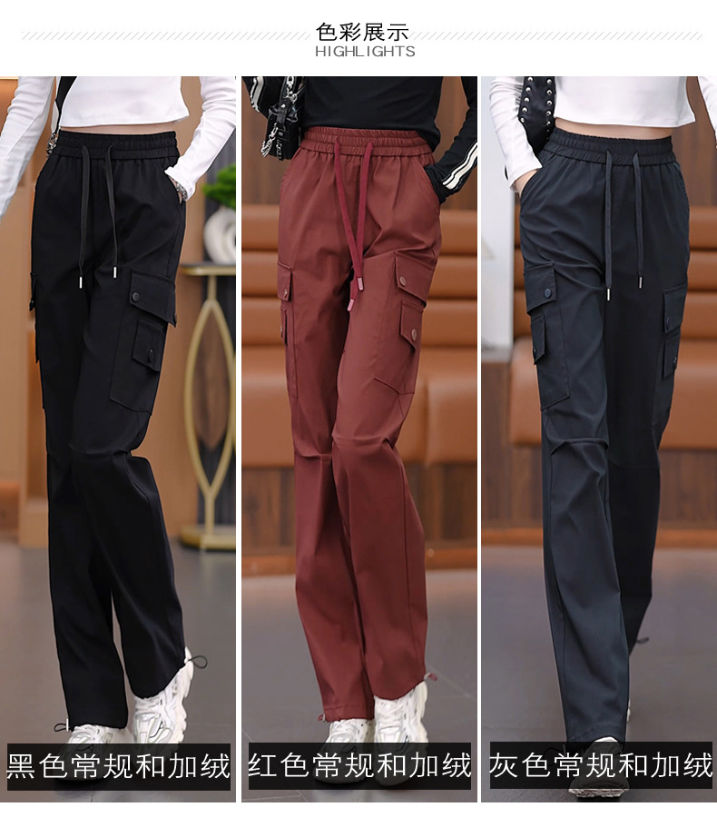여성용 벨벳 그레이 작업복 2024 겨울 새로운 두꺼운 스트레이트 하이 웨이스트 루즈 드로스트링 아웃도어 어썰트 팬츠