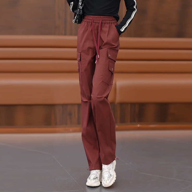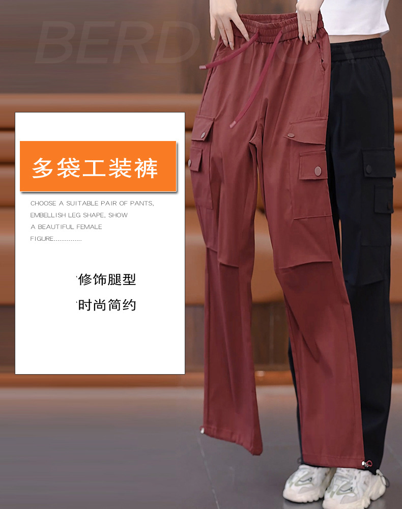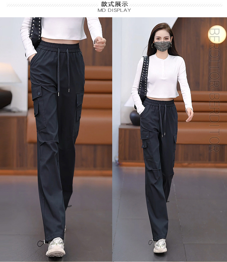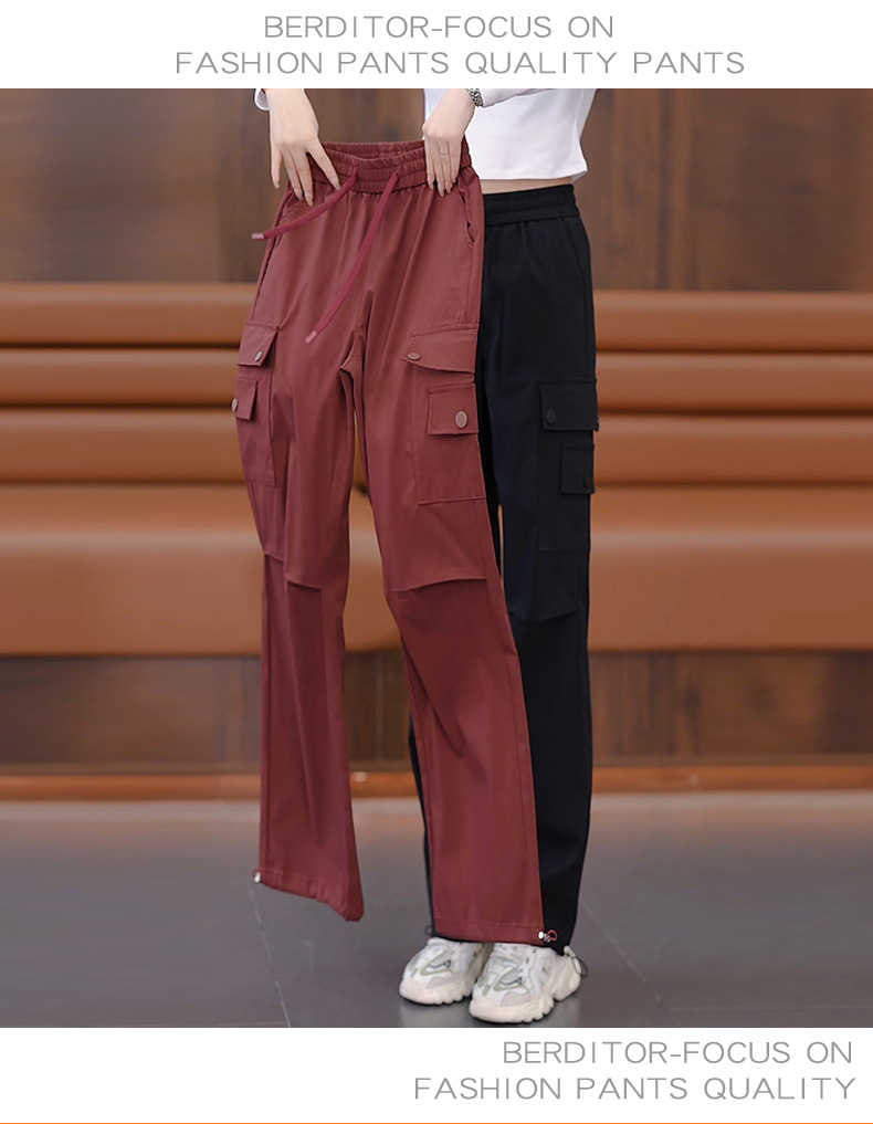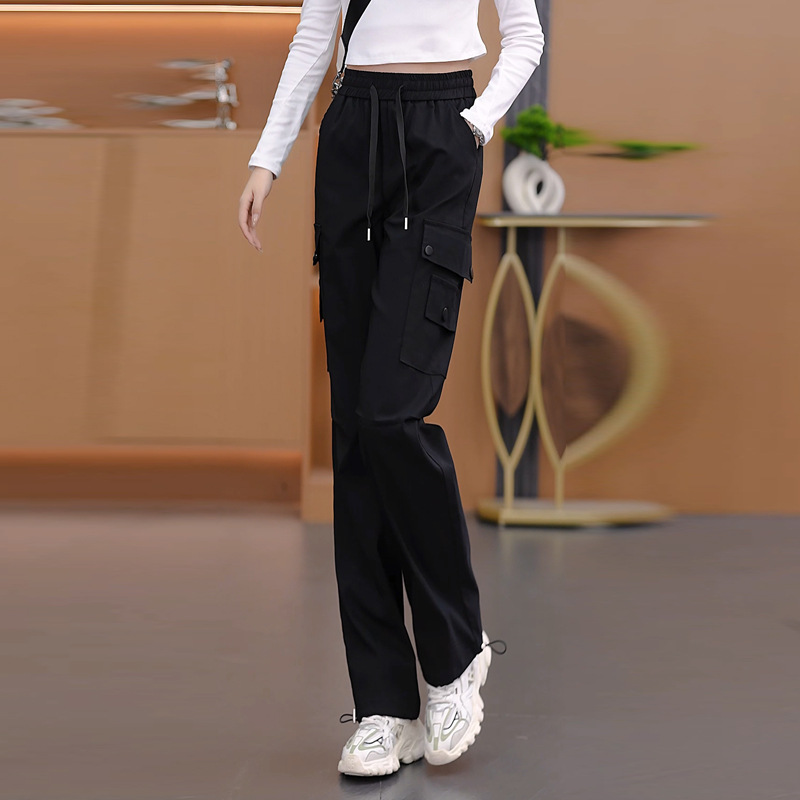 여성용 벨벳 그레이 작업복 2024 겨울 새로운 두꺼운 스트레이트 하이 웨이스트 루즈 드로스트링 아웃도어 어썰트 팬츠