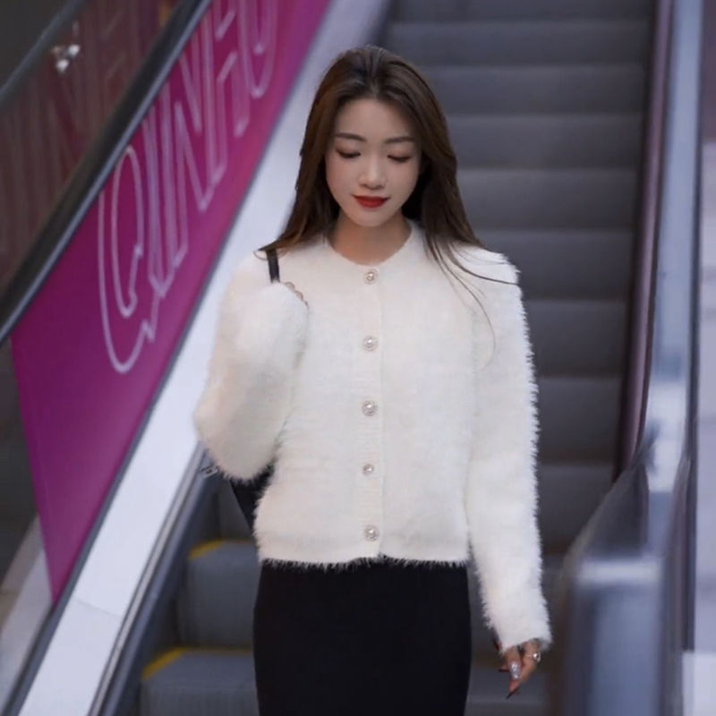 샤넬 스타일 블랙 울 모조 밍크 벨벳 니트 카디건 여성 짧은 양모 탑 느슨한 게으른 스웨터 재킷스토어 가기