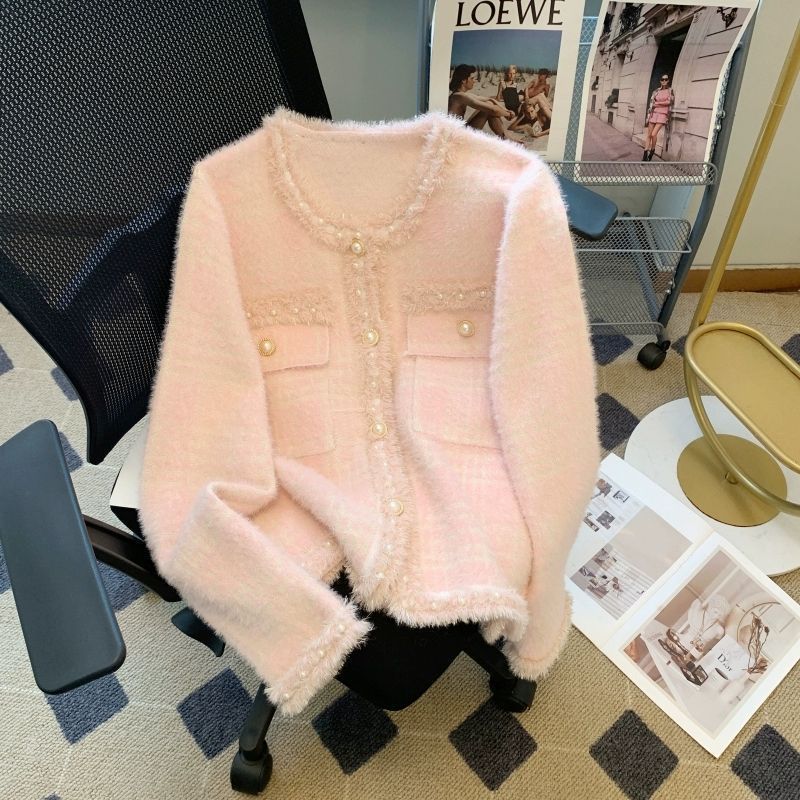밍크 벨벳 크루 넥 샤넬 스타일 스웨터 여성의 봄 플러스 사이즈 뚱뚱하고 부드러운 아름다운 슬림 니트 탑