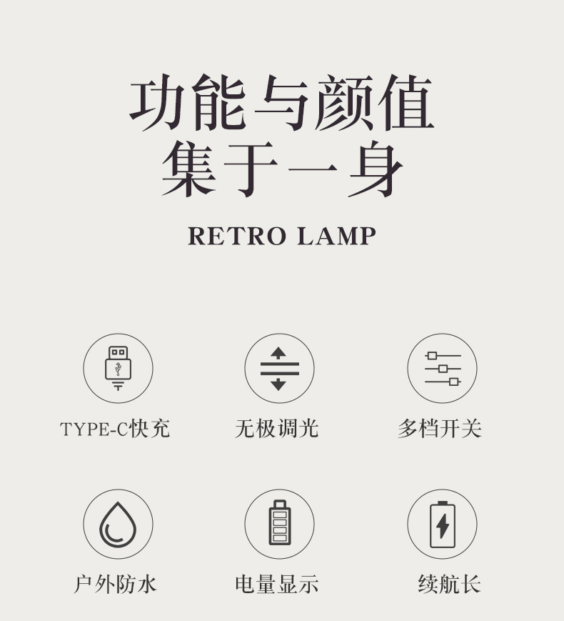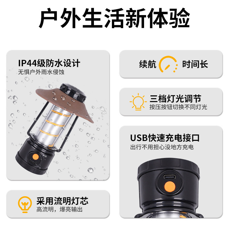 국경 새로운 캠핑 램프 야외 조명 손전등 스톨 휴대용 텐트 램프 다기능 충전식 캠핑 램프