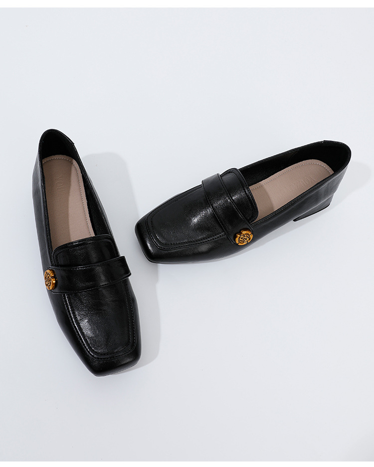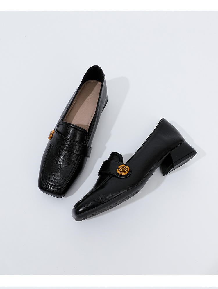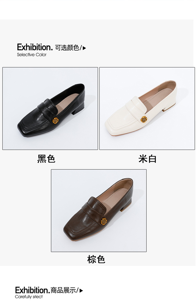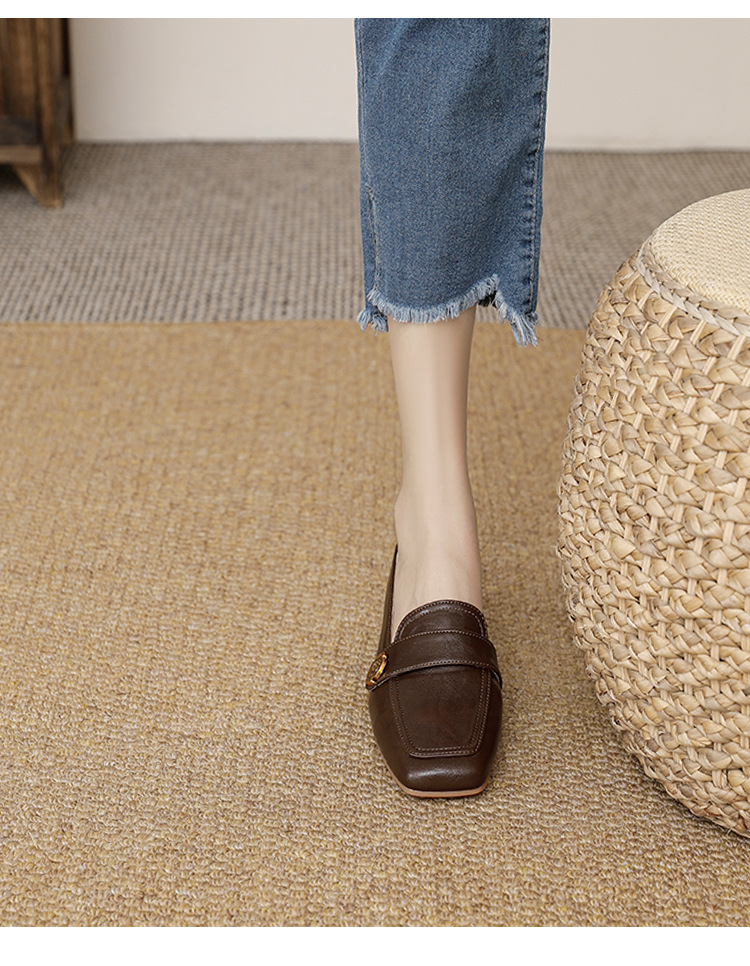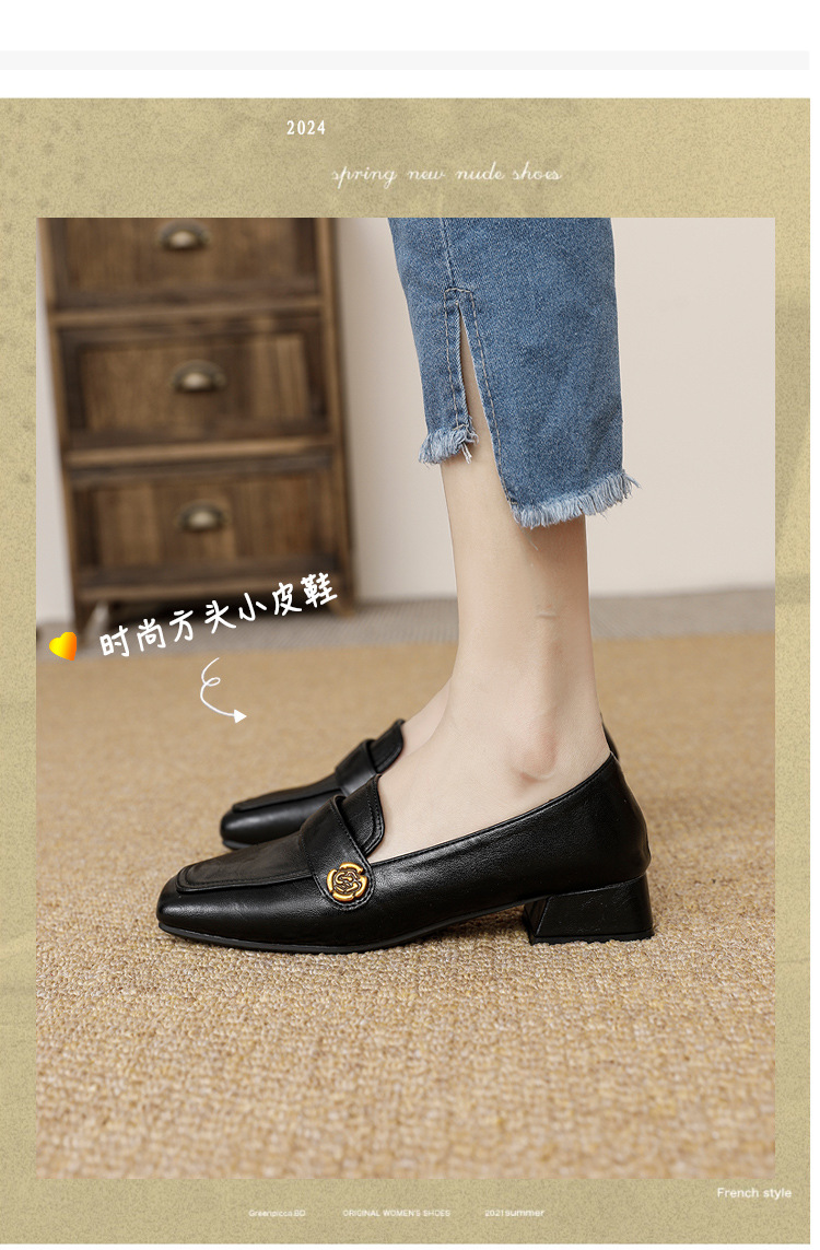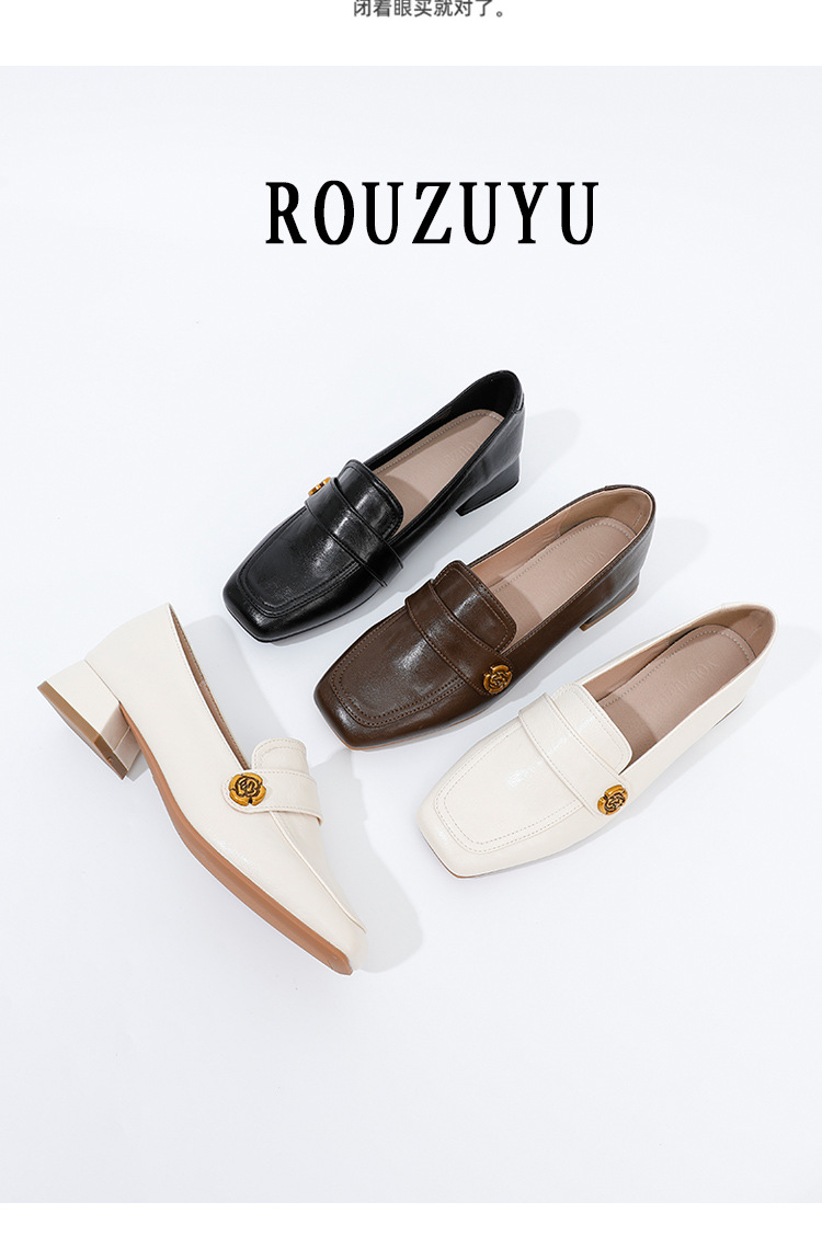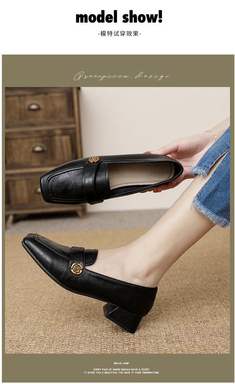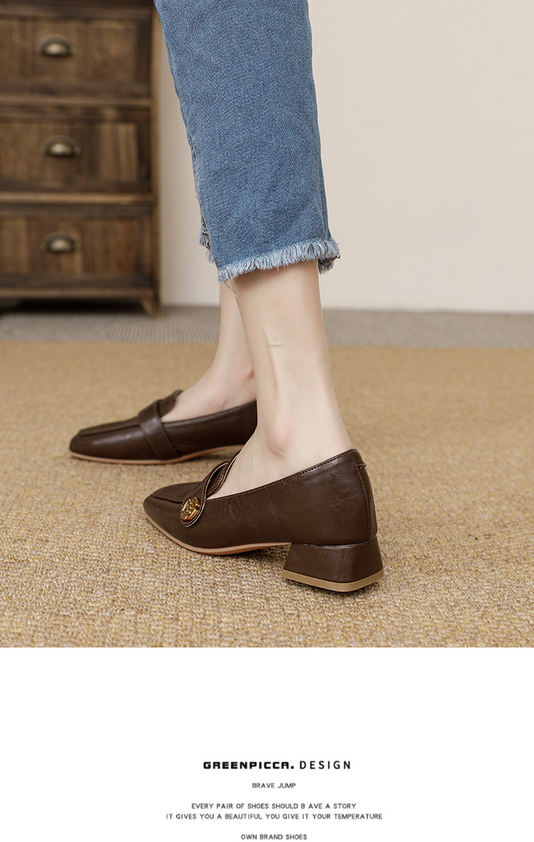 여성용 두꺼운 굽 로퍼 2025 겨울 레트로 스타일 다용도 스퀘어 토 미들 힐 슬립온 사계절 가죽 신발 로우힐스토어 가기