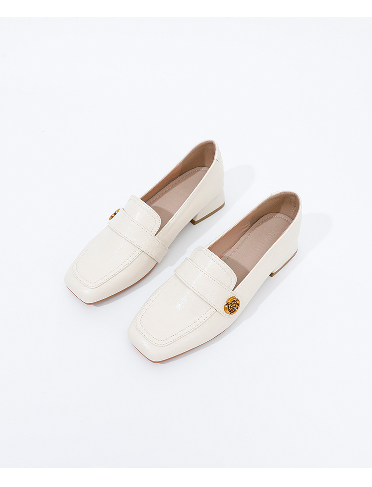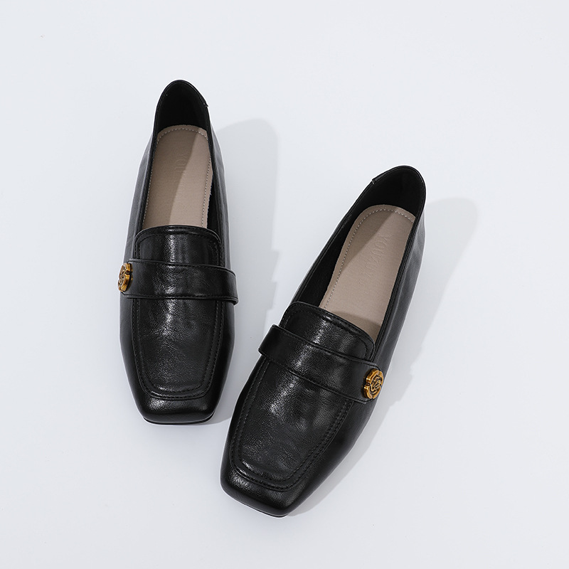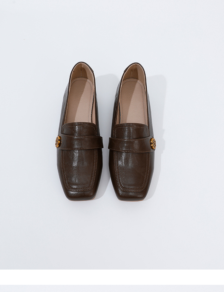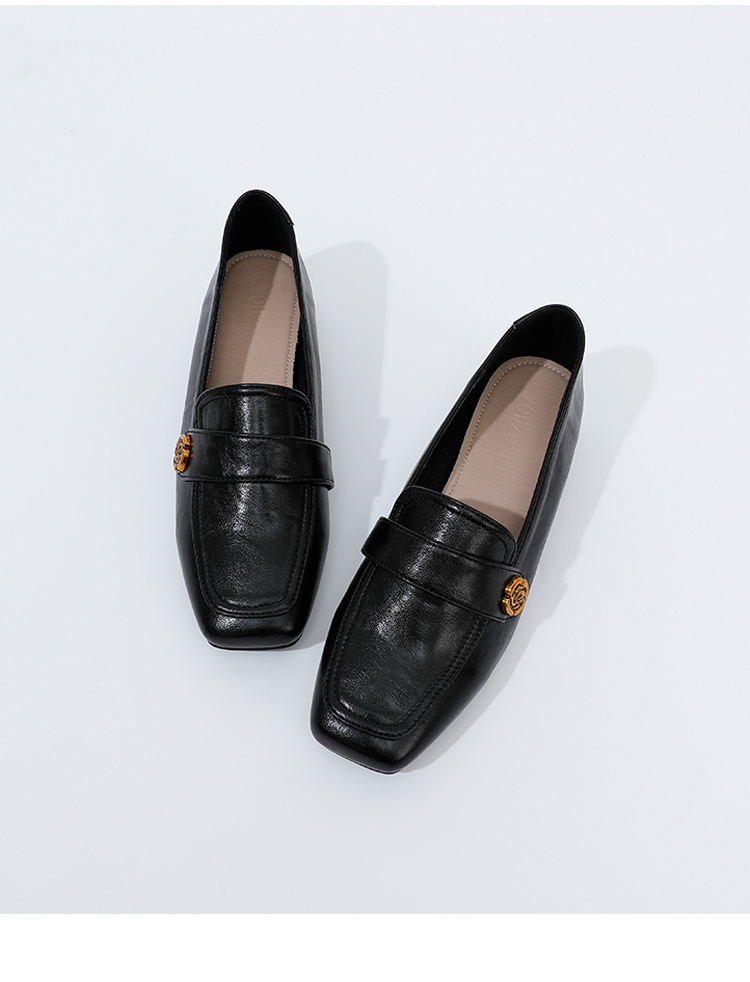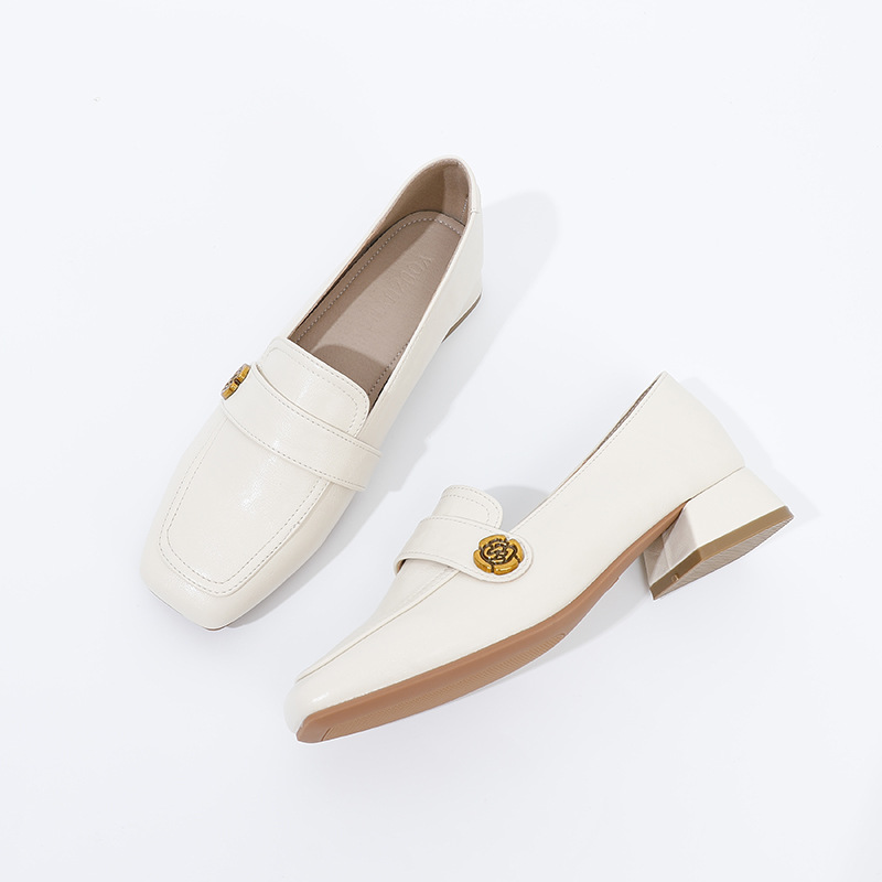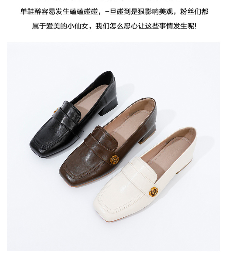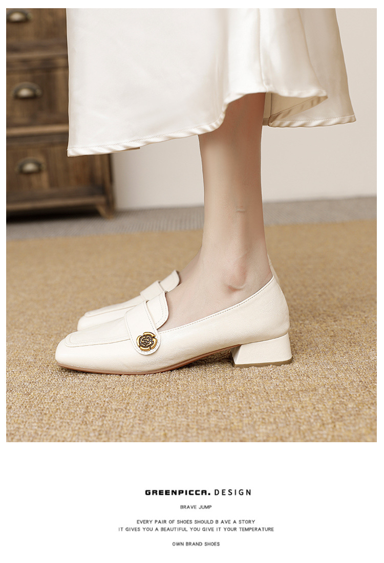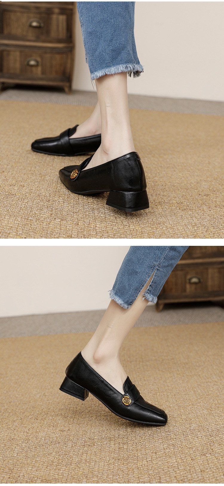 여성용 두꺼운 굽 로퍼 2025 겨울 레트로 스타일 다용도 스퀘어 토 미들 힐 슬립온 사계절 가죽 신발 로우힐스토어 가기