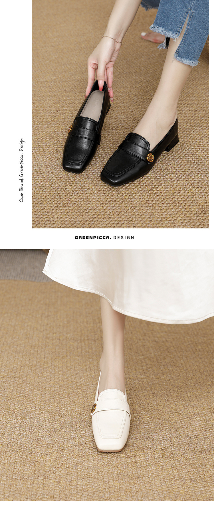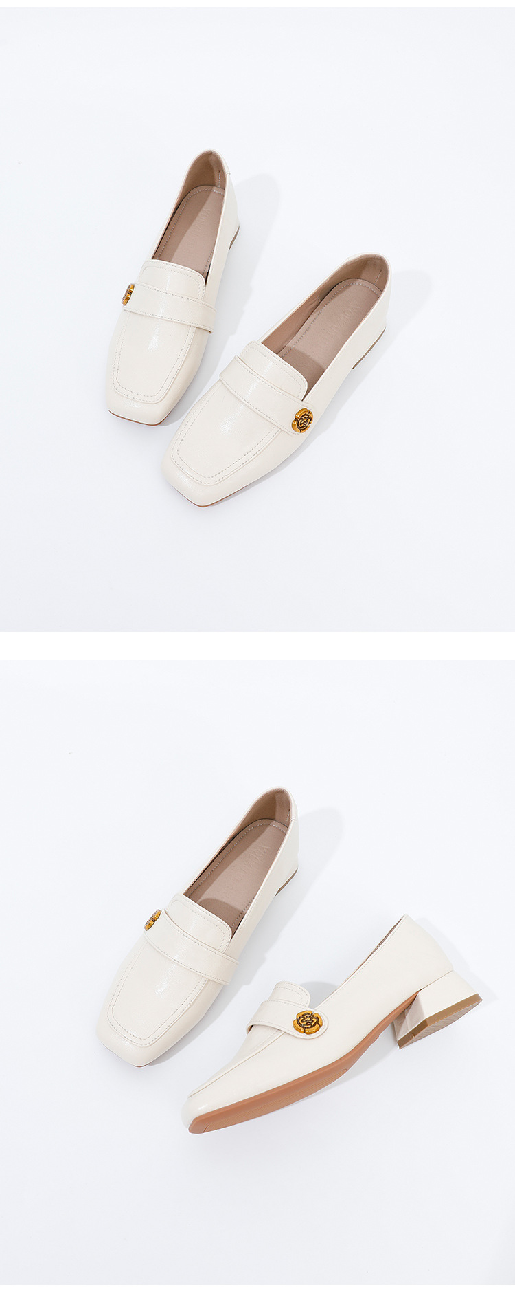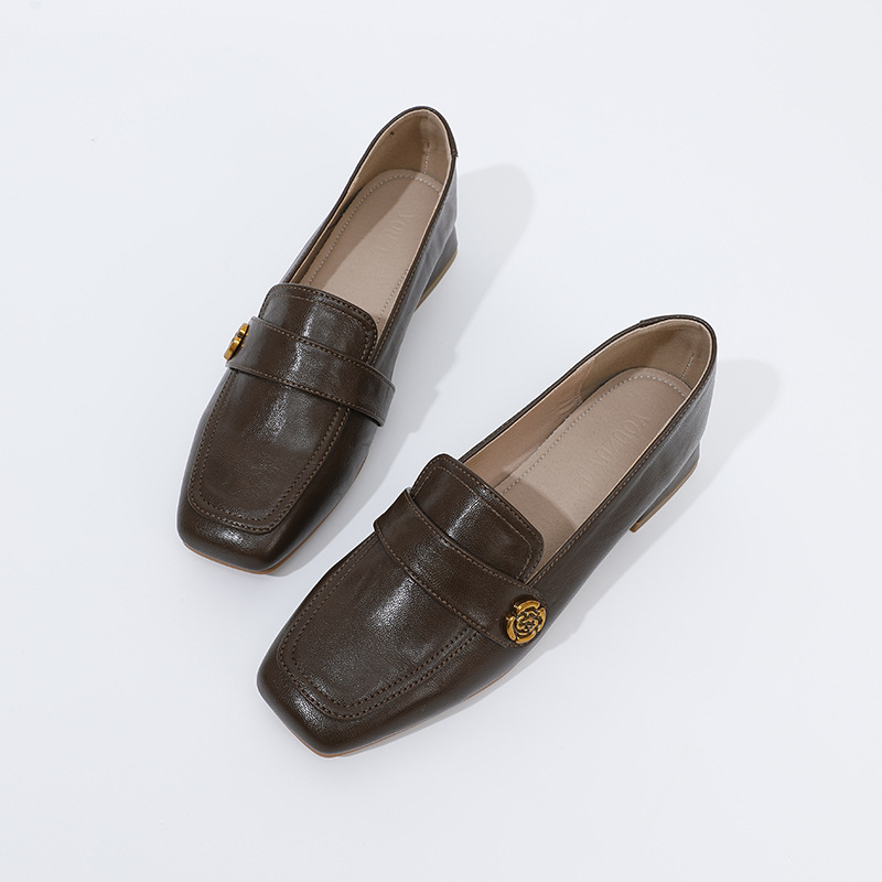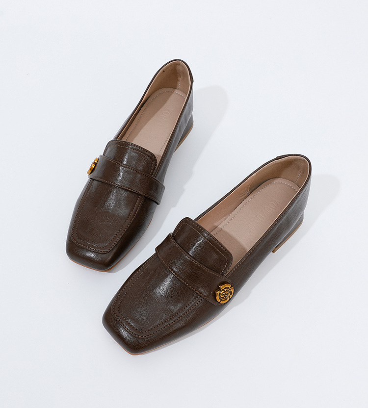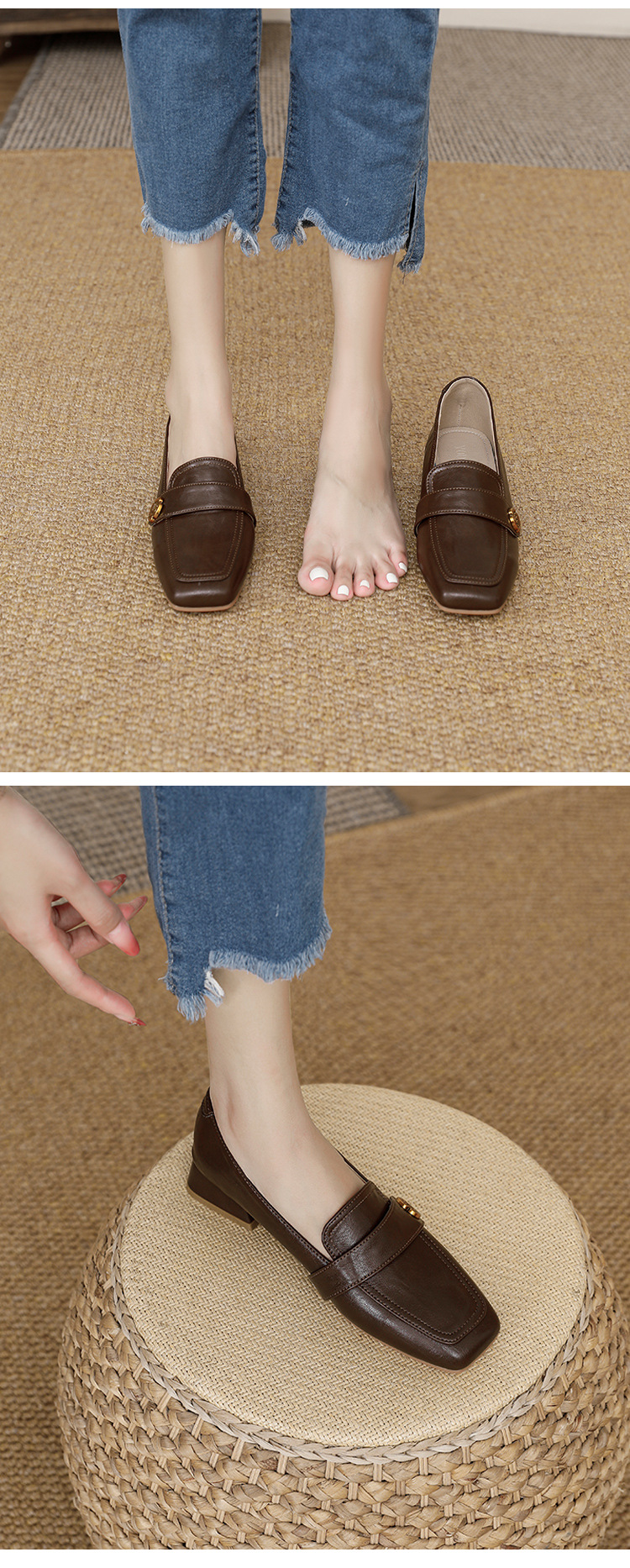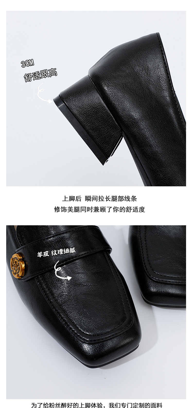 여성용 두꺼운 굽 로퍼 2025 겨울 레트로 스타일 다용도 스퀘어 토 미들 힐 슬립온 사계절 가죽 신발 로우힐스토어 가기