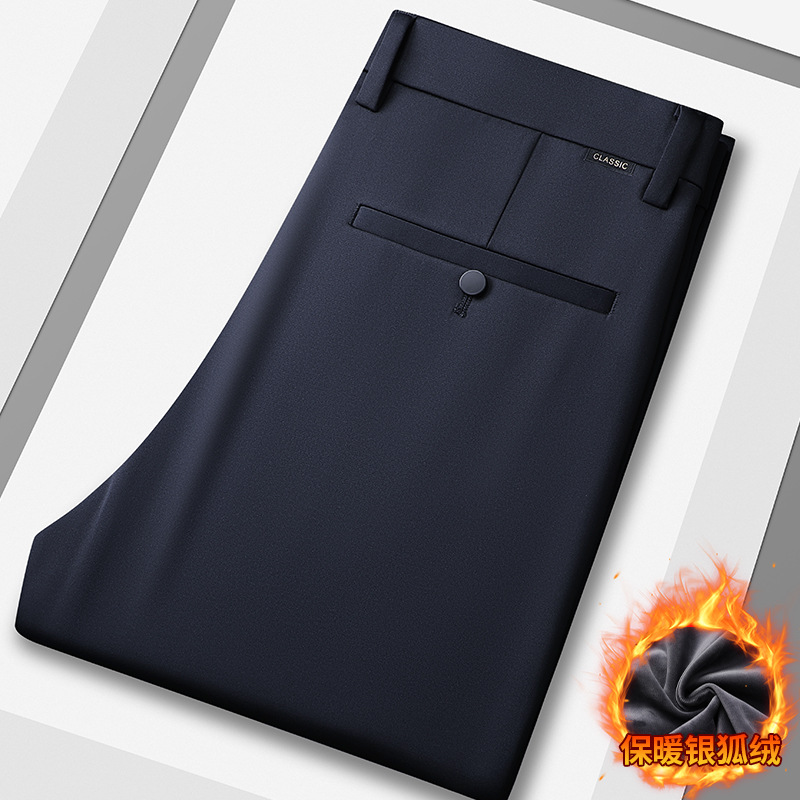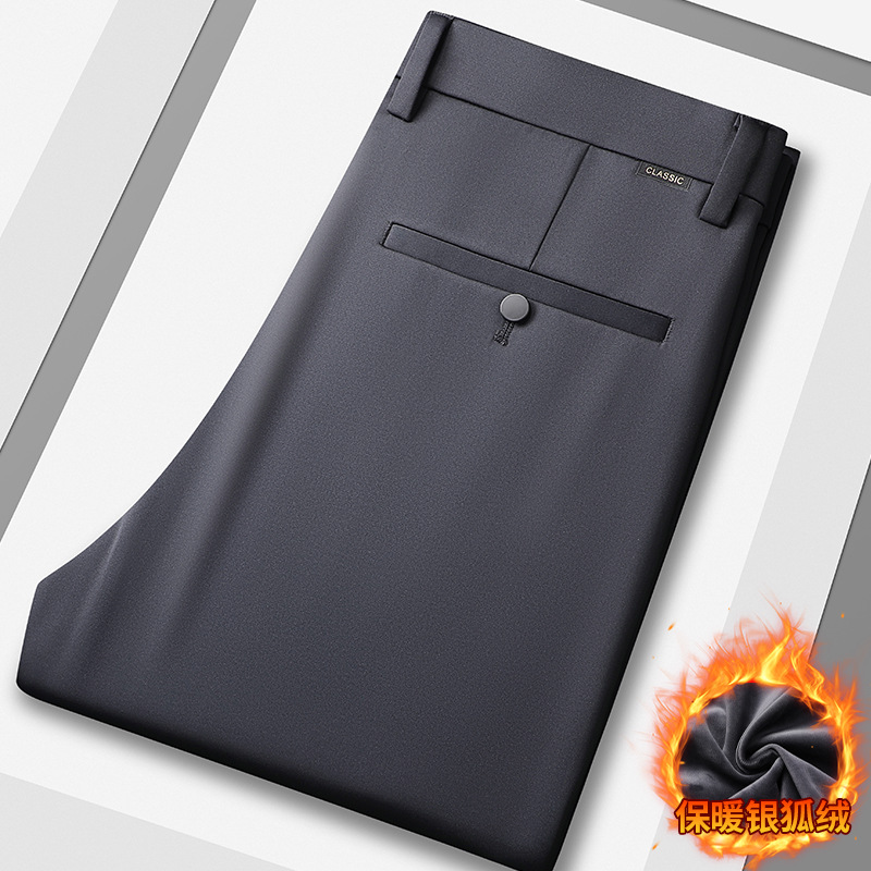 남자 비즈니스 캐주얼 바지 가을과 겨울 기모 검은 바지 겨울 새 원피스 바지 트렌디 한 원피스 바지