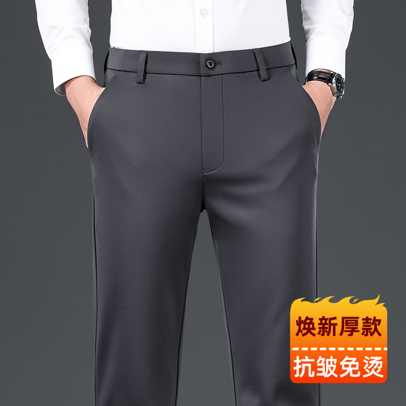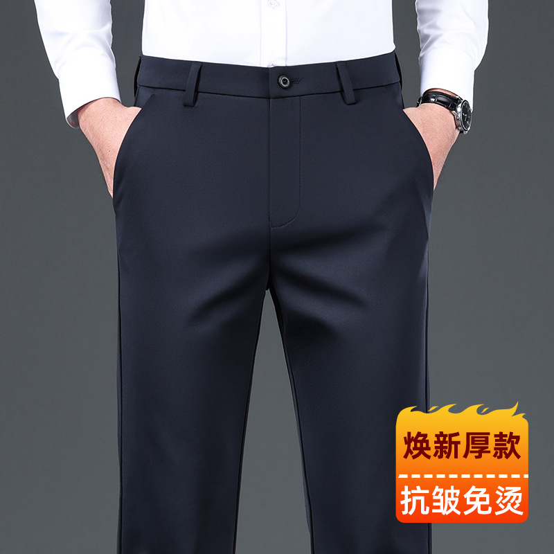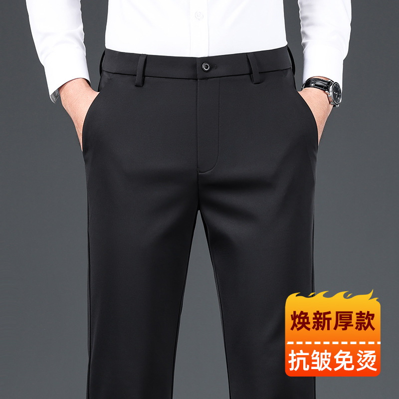 남자 비즈니스 캐주얼 바지 가을과 겨울 기모 검은 바지 겨울 새 원피스 바지 트렌디 한 원피스 바지스토어 가기