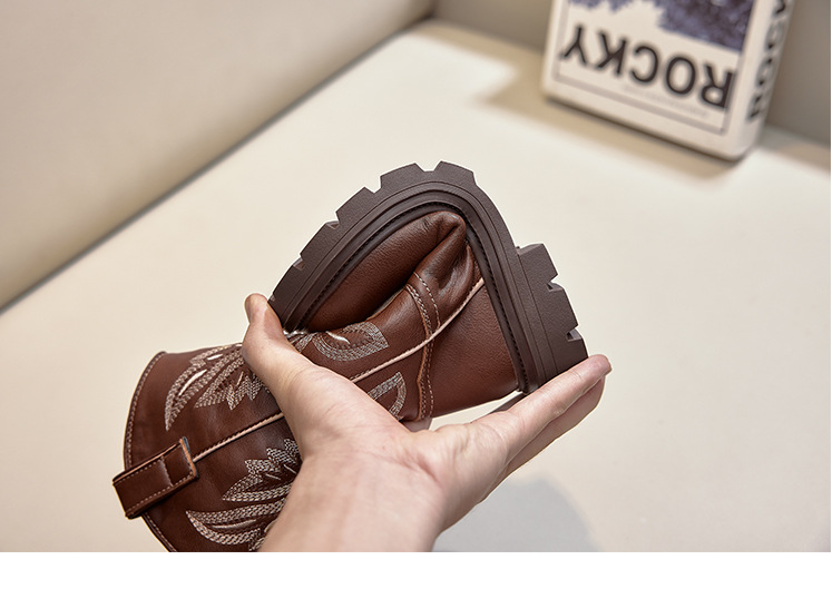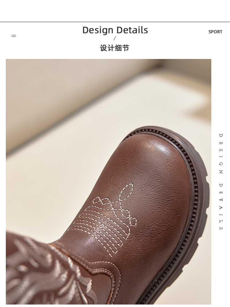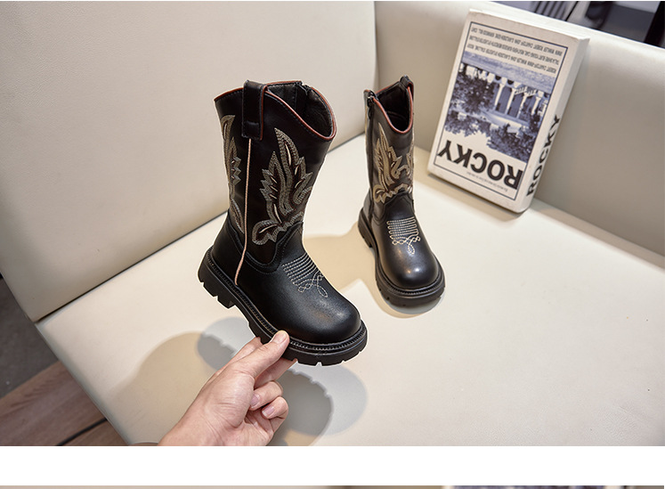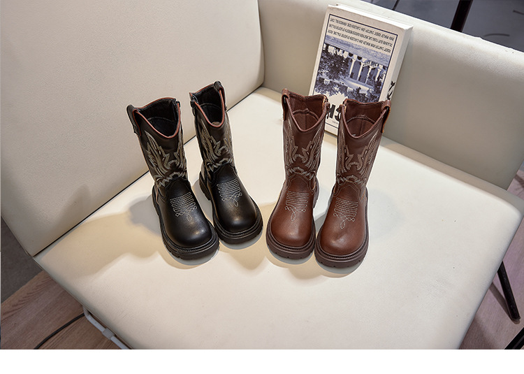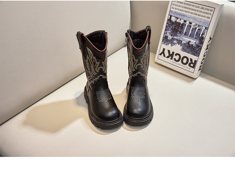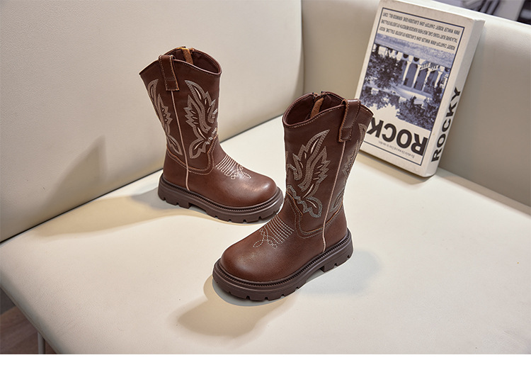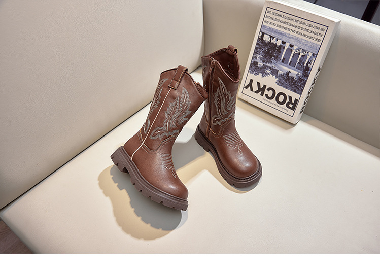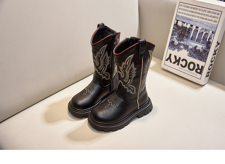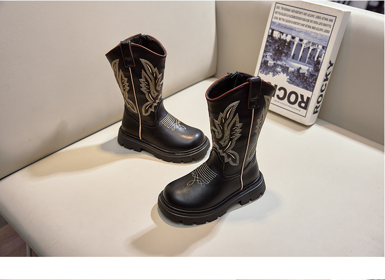 여아용 웨스턴 카우보이 부츠 2025 가을 신상 자수 소프트 가죽 레트로 아동 마틴 부츠 미드컷 부츠 미끄럼 방지스토어 가기