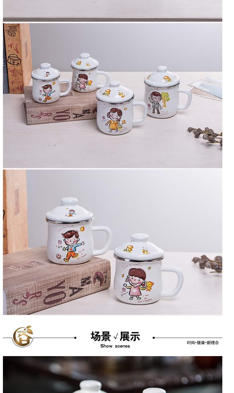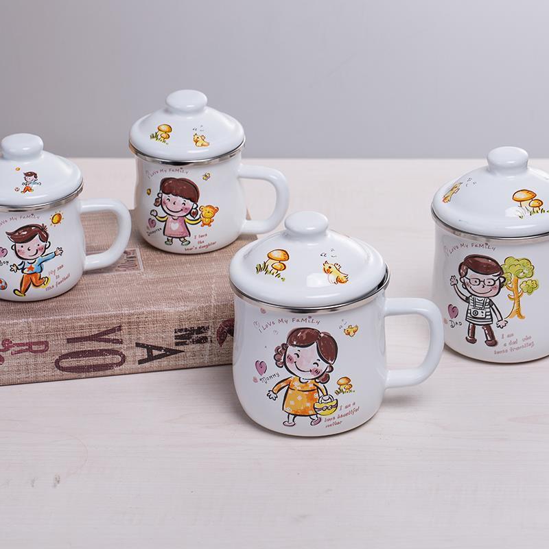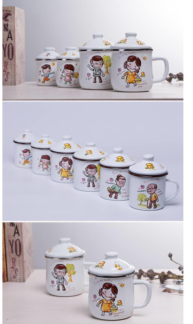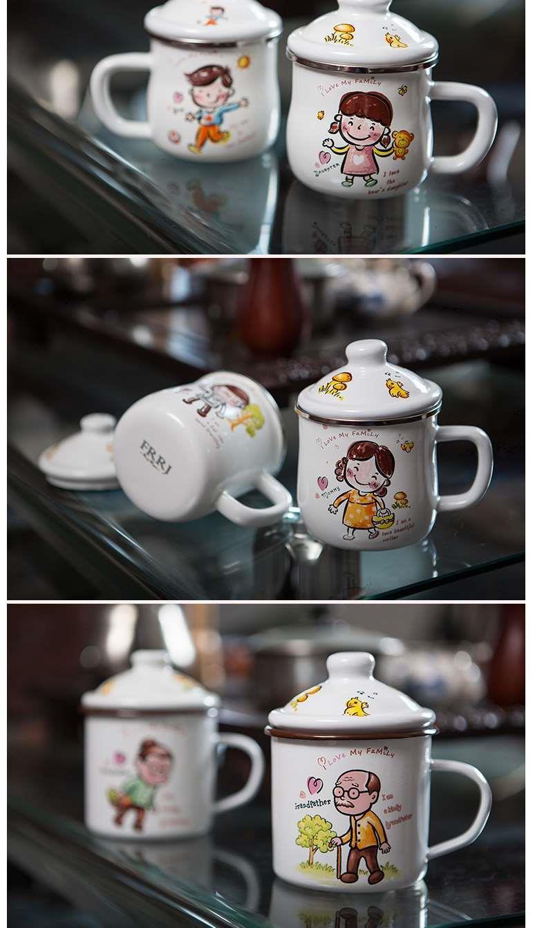 가족 에나멜 컵 두껍고 낙엽에 강한 뚜껑 차 탱크를 가진 4 개의 브러시 컵 가족 행복한 부모 컵 세트 Jiatai스토어 가기