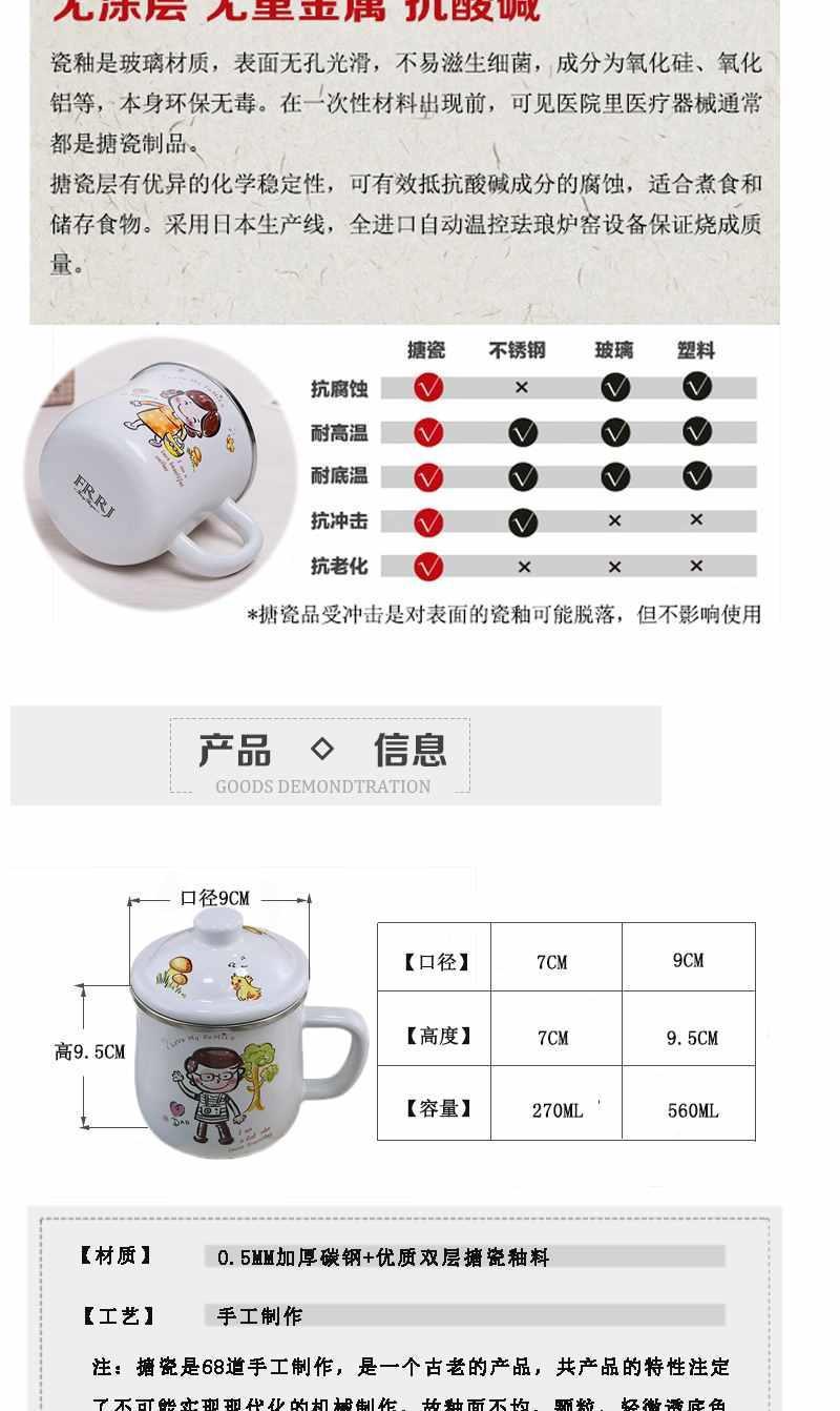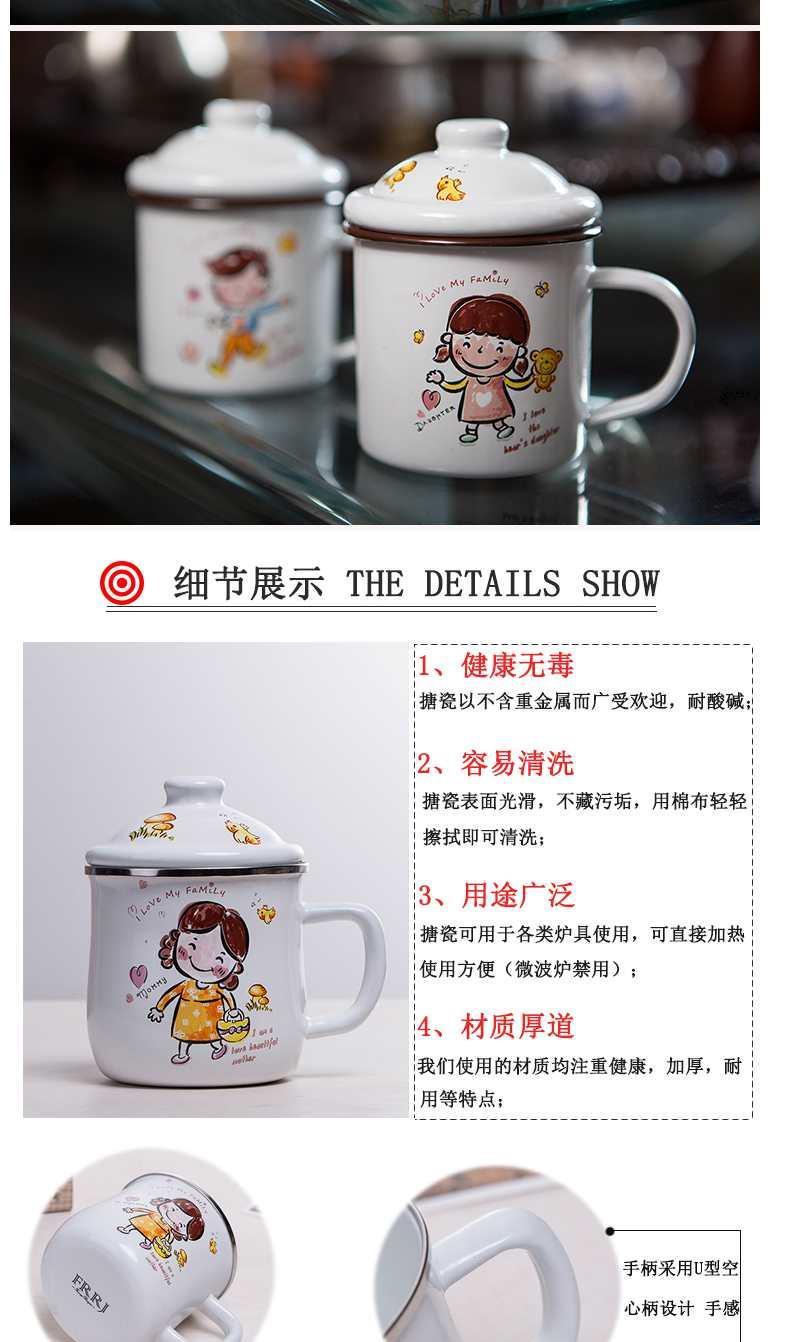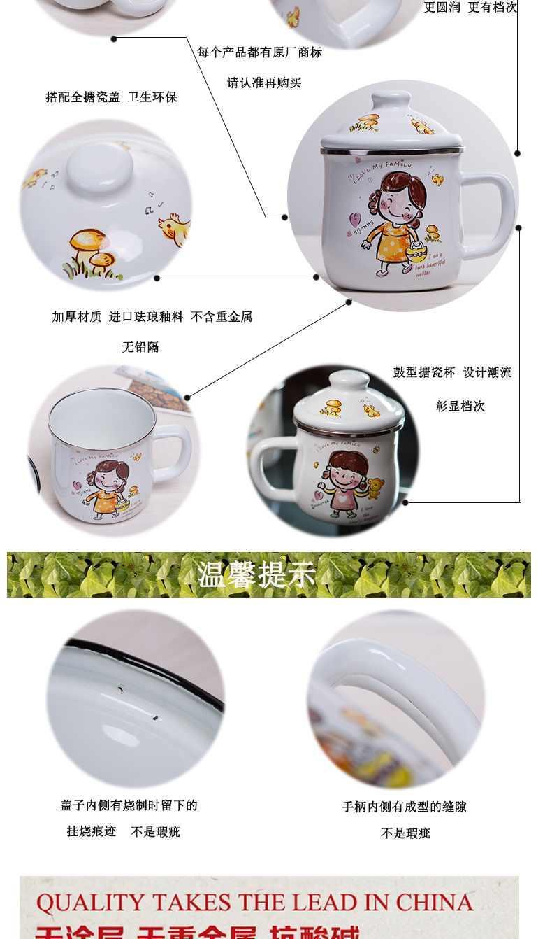 가족 에나멜 컵 두껍고 낙엽에 강한 뚜껑 차 탱크를 가진 4 개의 브러시 컵 가족 행복한 부모 컵 세트 Jiatai스토어 가기