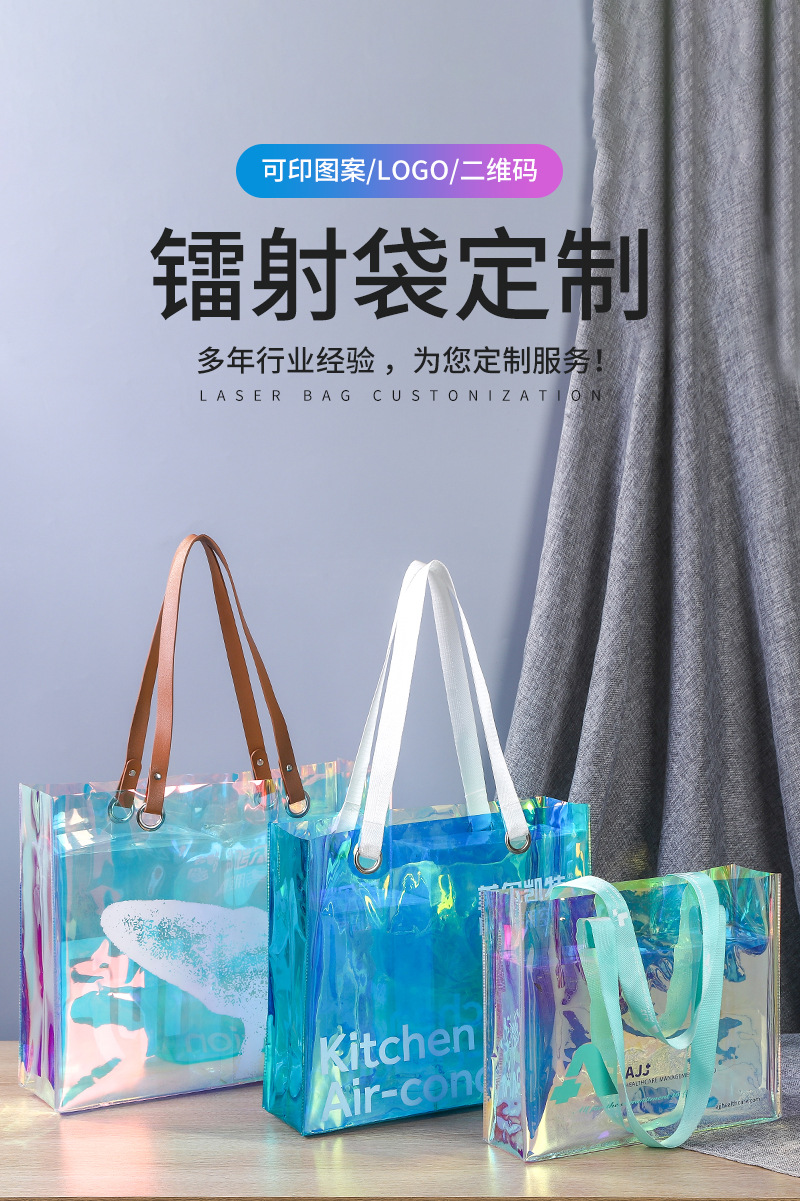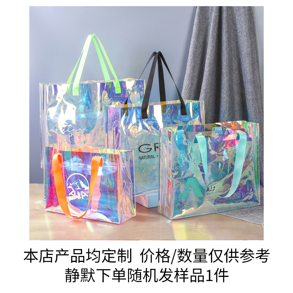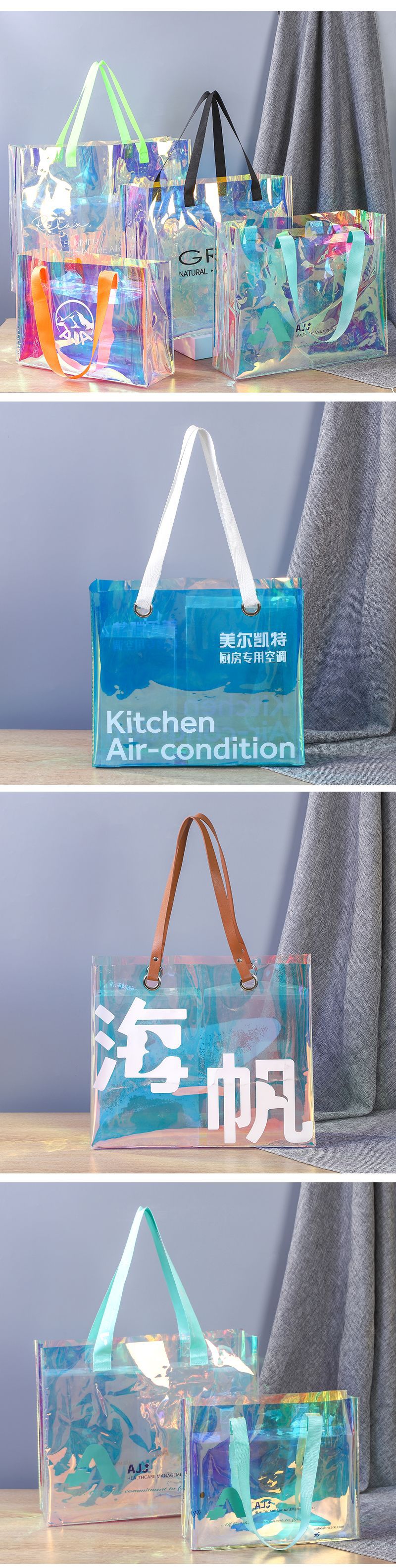 제조업체는 광고 로고가 인쇄된 PVC 다채로운 레이저 소녀 숄더 핸드백 투명 화장품 가방을 만듭니다.스토어 가기